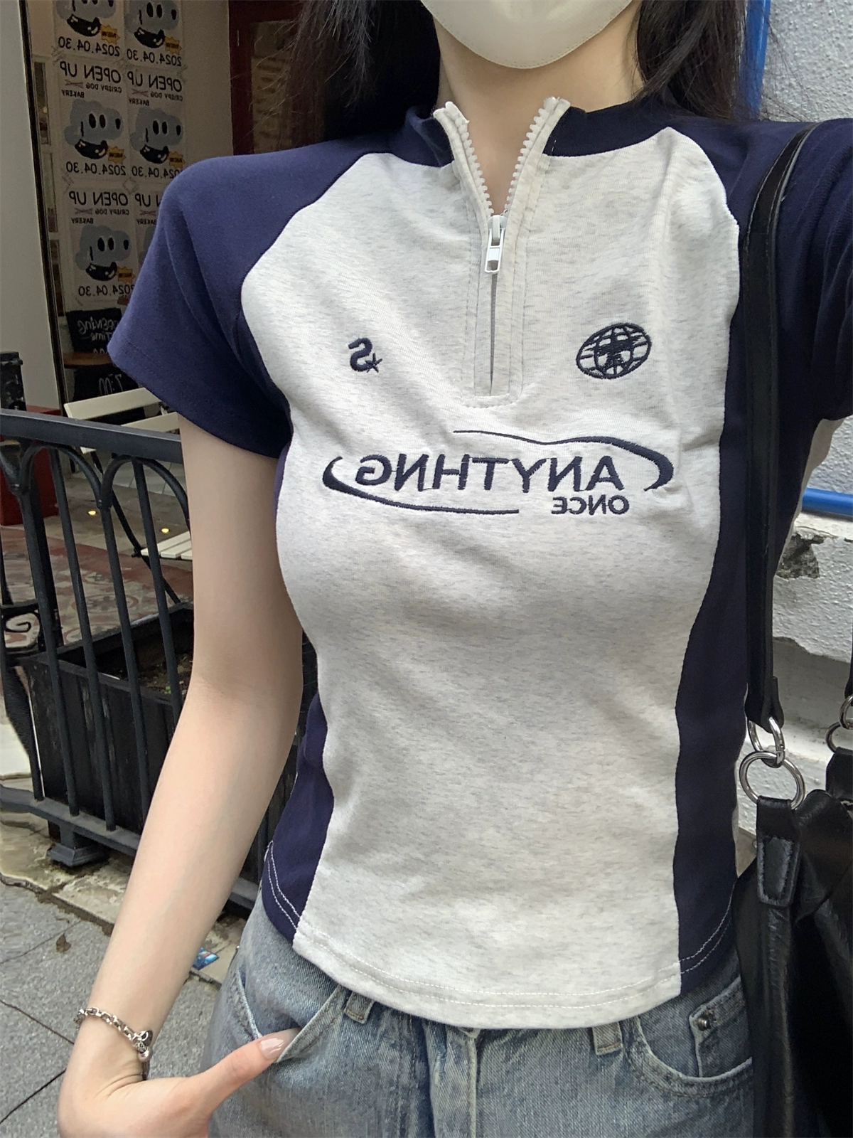 2024 Summer Slim Lettering Contrast Color Top Embroidery