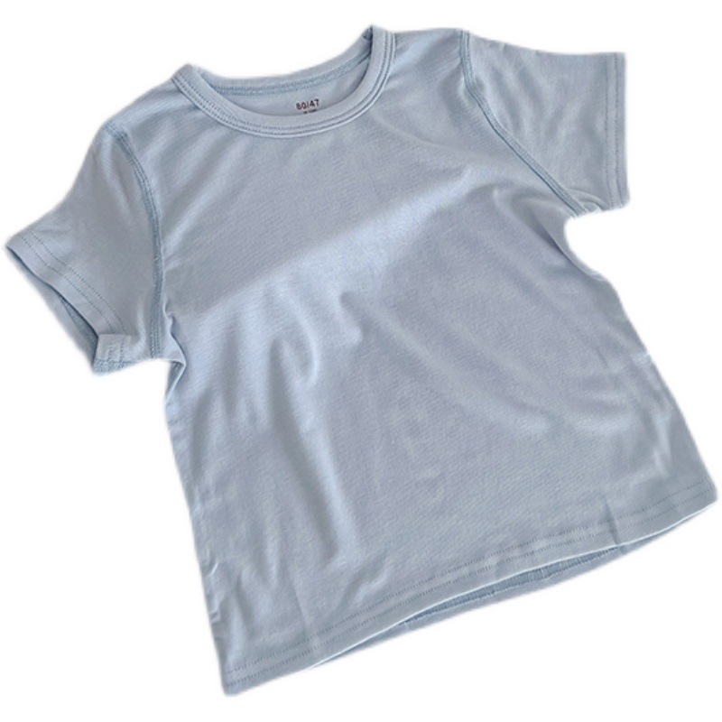2024 Summer Solid Color All-match Round Neck T-shirt Baby's Boneless Comfortable Short-sleeved Traceless Top