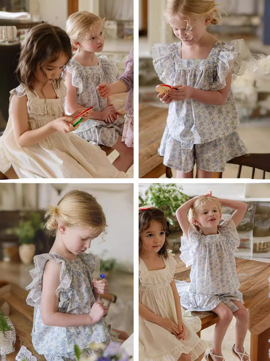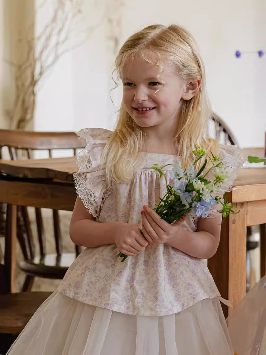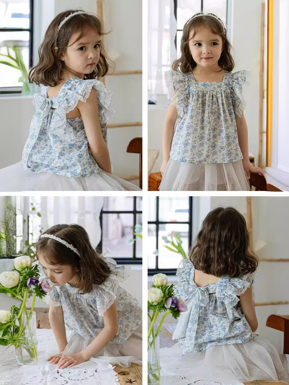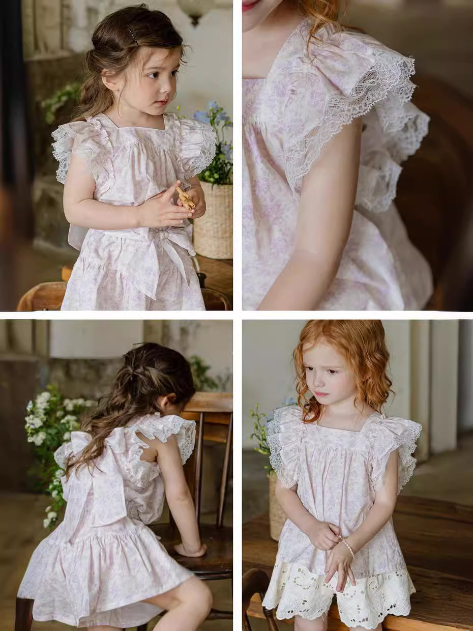| nameOriginal | 2024 Summer Strawberry Shaman South Korea Girls Girls Children Retro Fresh Lace Flower Color Fin Edge Knot Shirt |