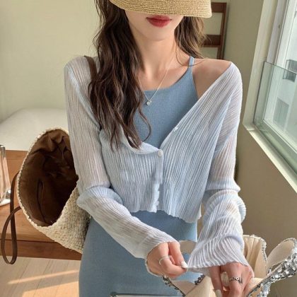 | nameOriginal | 2024 Summer Sunscreen Cardigan Ice Silk Long-sleeved Top Women's Korean Style All-match Lightweight Short Shawl Blouse |