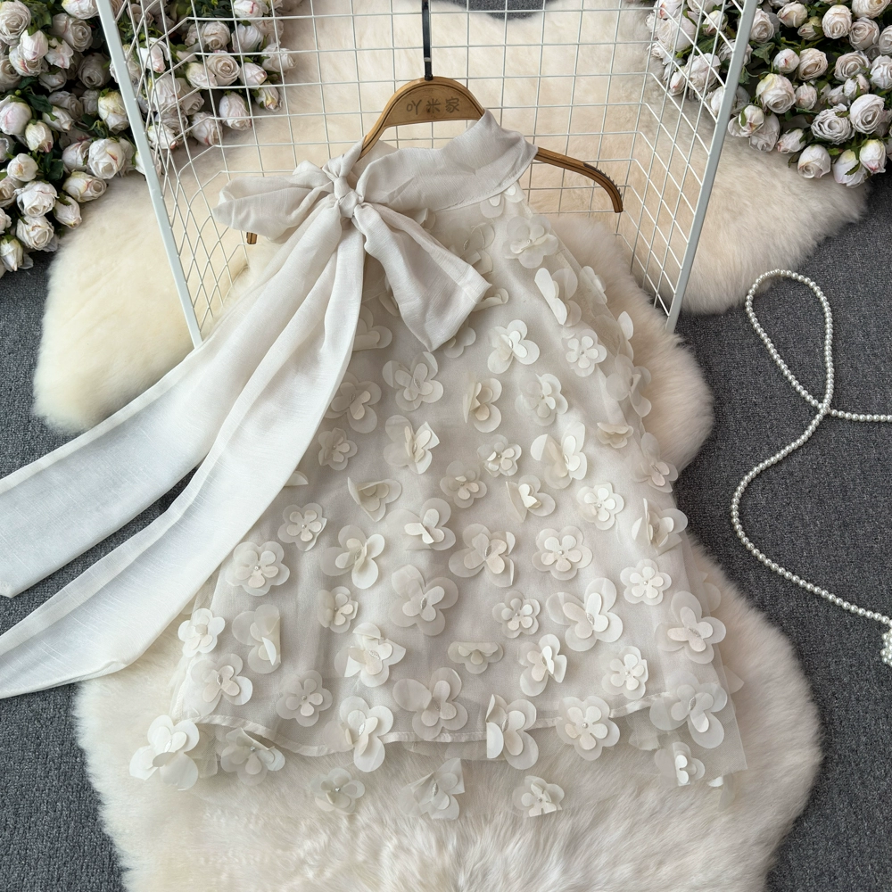 | nameOriginal | 2024 Summer Temperament Loose Sleeveless Shirt for Women Retro French Bow Halter Neck Off-Shoulder Three-dimensional Petal Top for Women |
