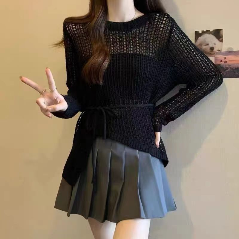 | nameOriginal | 2024 Summer Thin Lazy Style Draped Air Conditioner Blouse Women's Round Neck Irregular Crochet Hollow Knit Sweater |