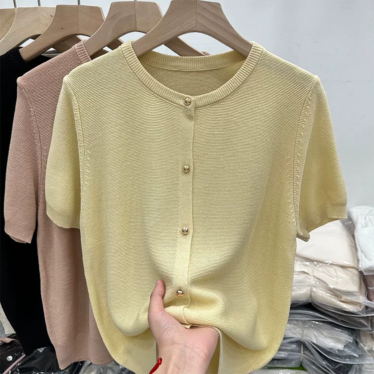 2024 Summer Single Dispels Short -sleeved Knit Sweed
