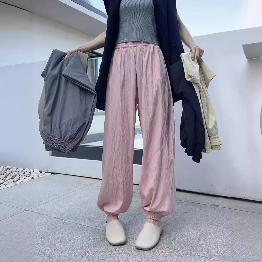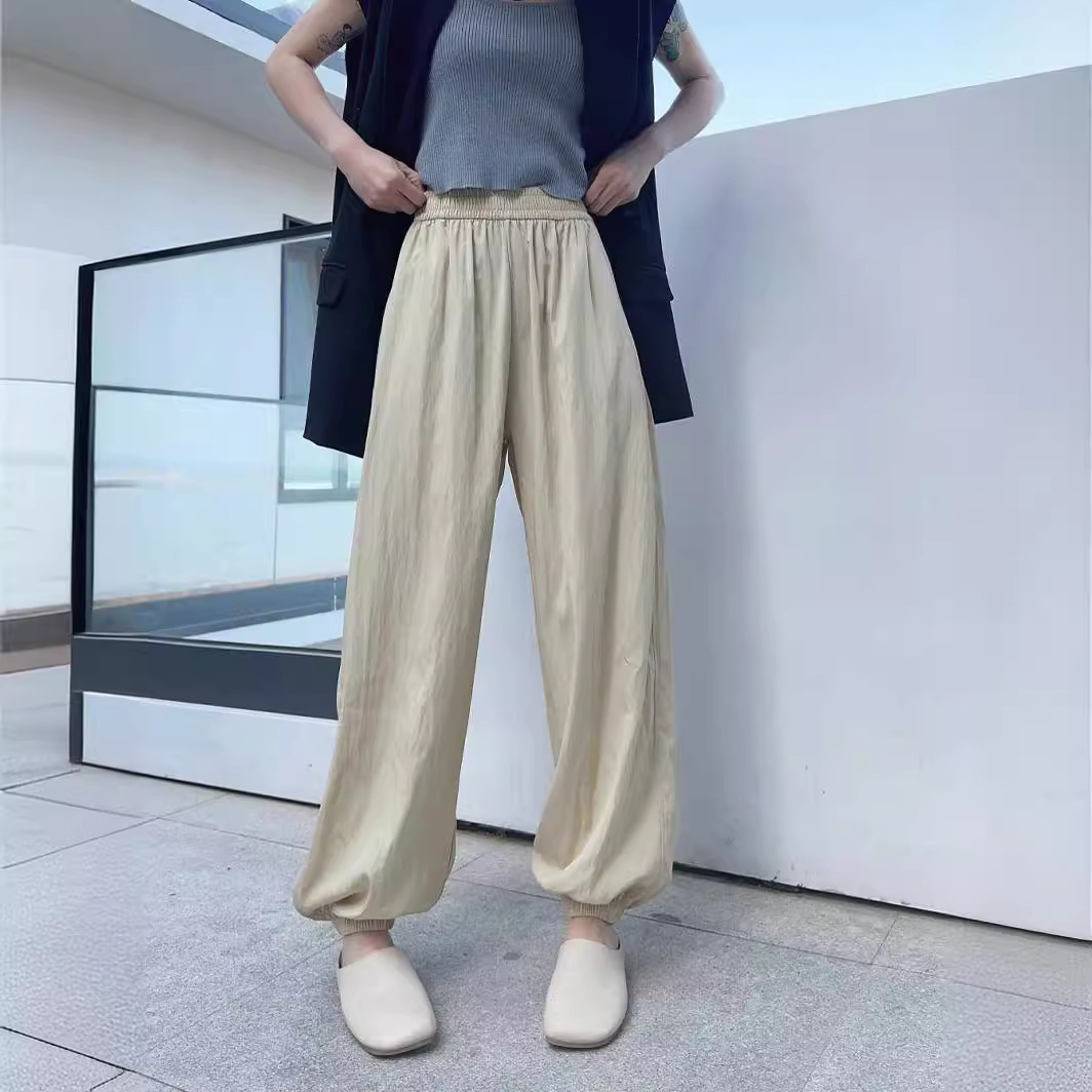 2024 Summer Thin Solid Color Wide Leg Pants Women’s Refreshing Breathable Loose plus size Trendy Cool high quality Nose Casual Pants