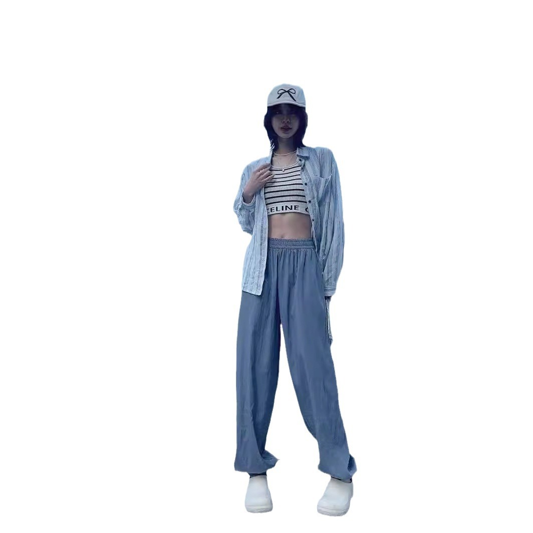 2024 Summer Thin Solid Color Wide Leg Pants Women's Refreshing Breathable Loose plus size Trendy Cool high quality Nose Casual Pants