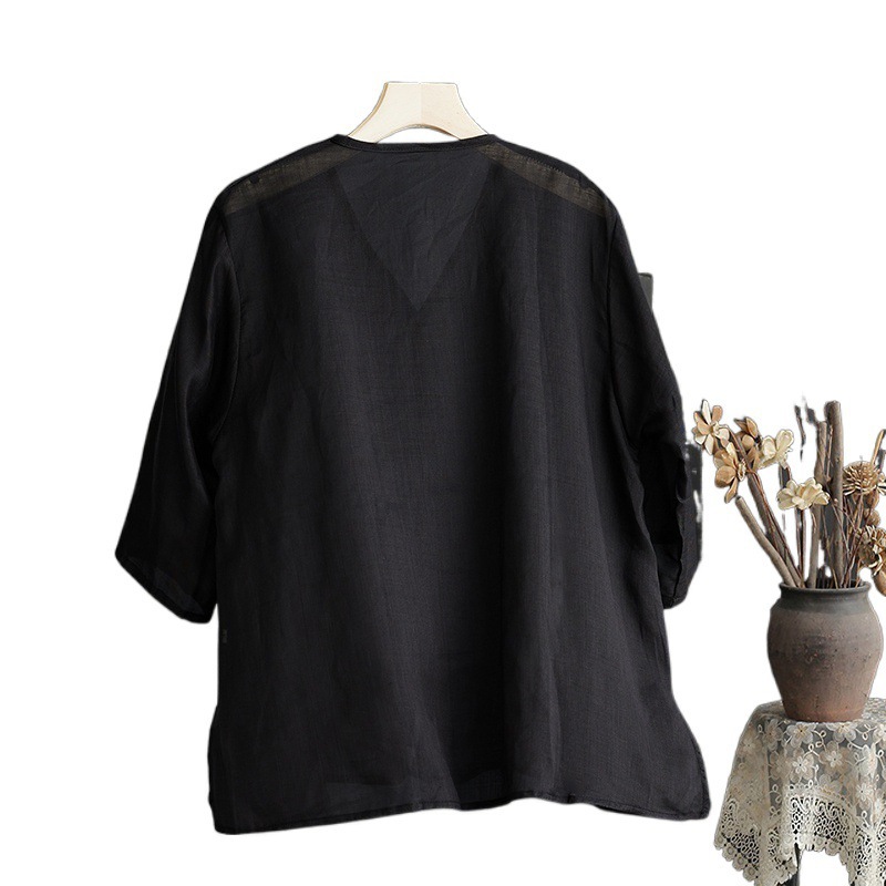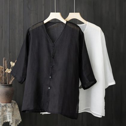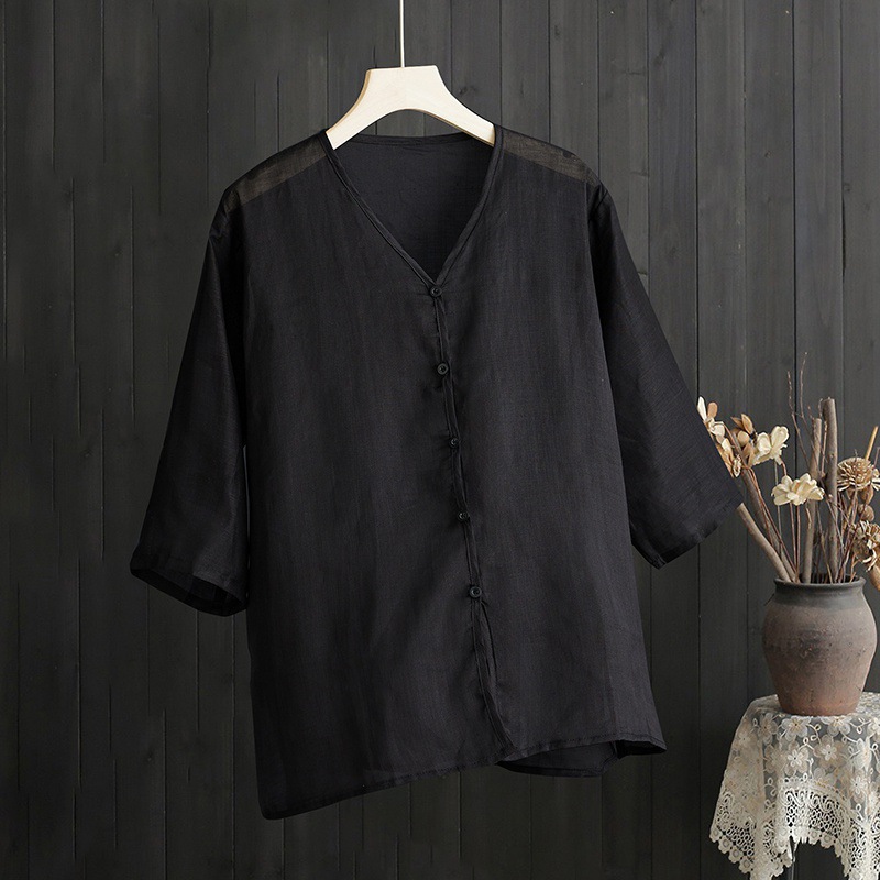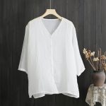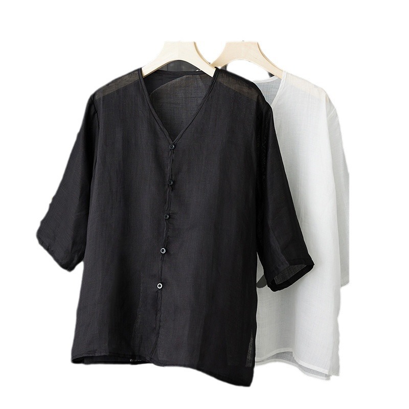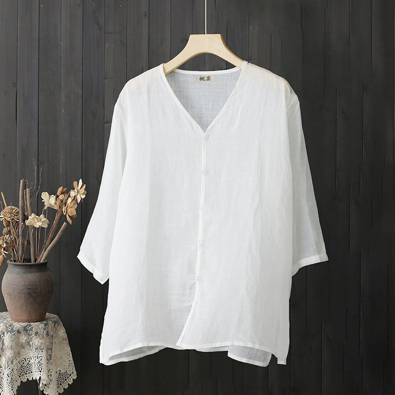 | nameOriginal | 2024 Summer Thin Top Loose plus size V-Neck Mid-Sleeve Shirt Light Cotton Linen Shirt |