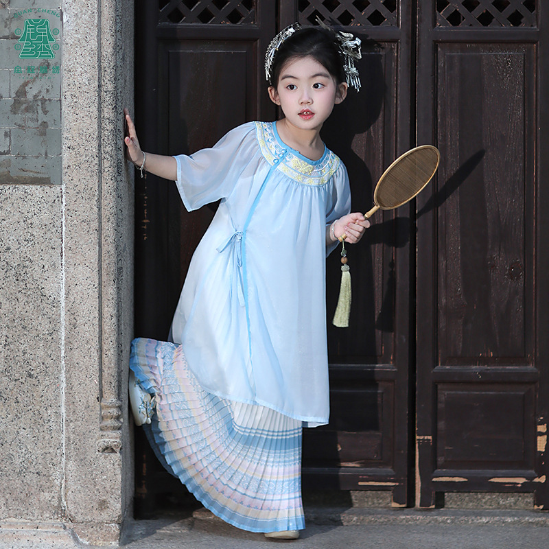 | nameOriginal | 2024 Summer Thin Yi Pleated Skirt Hanfu Children's Minority Style Girls' Two-Piece Exodism Performance Suit |