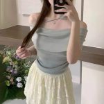 2024 Summer Tie-Up Butterfly Pleated Sweater Korean-Style Slim-Fit Western-Style All-Match Top
