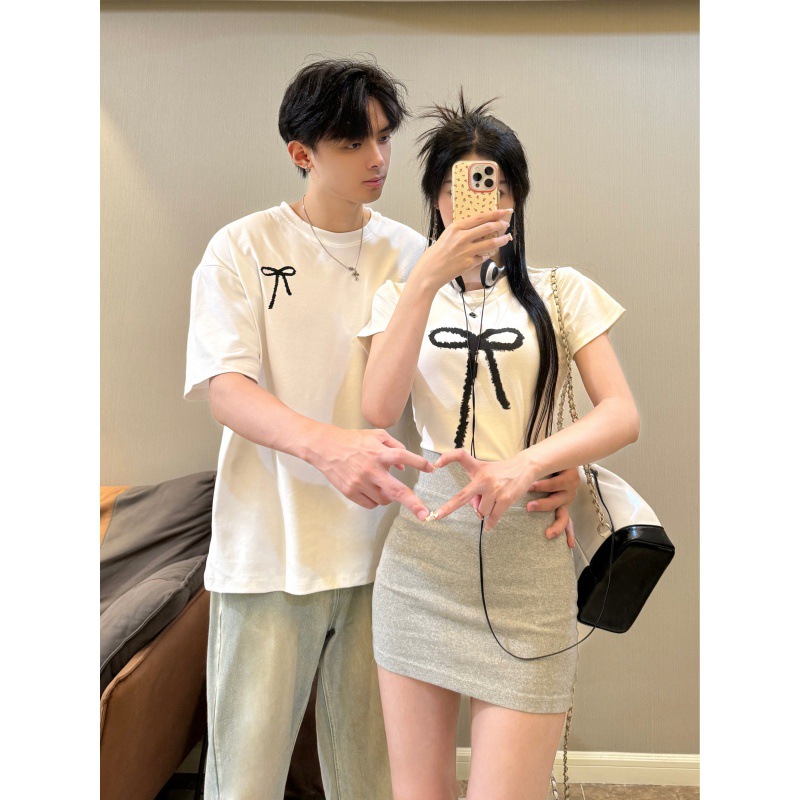 | nameOriginal | 2024 Summer Trendy Bow Print Men's and Women's Short-sleeved Couple T-Shirt |