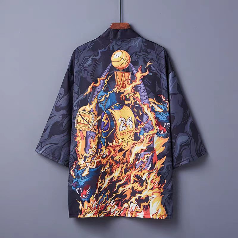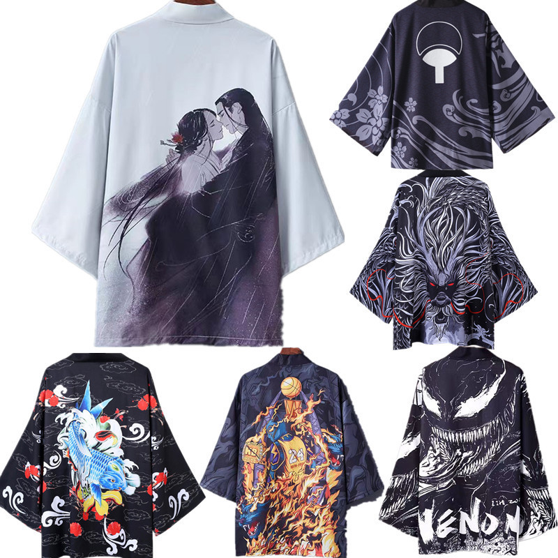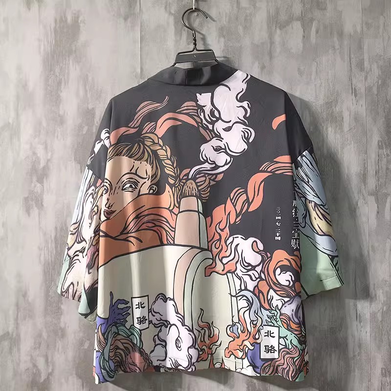 2024 Summer Ukiyo-e Chinese Style Digital Printed Kimono Cloak Loose Seven-point Sleeve Cardigan Robe Feather Woven Clothing
