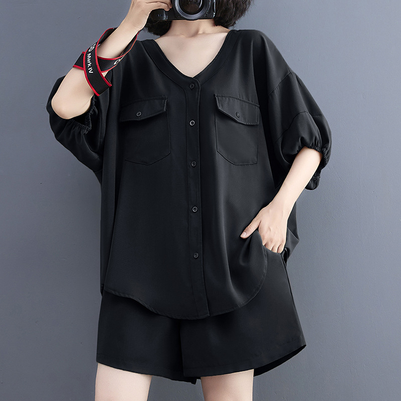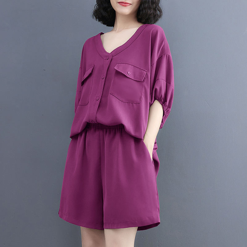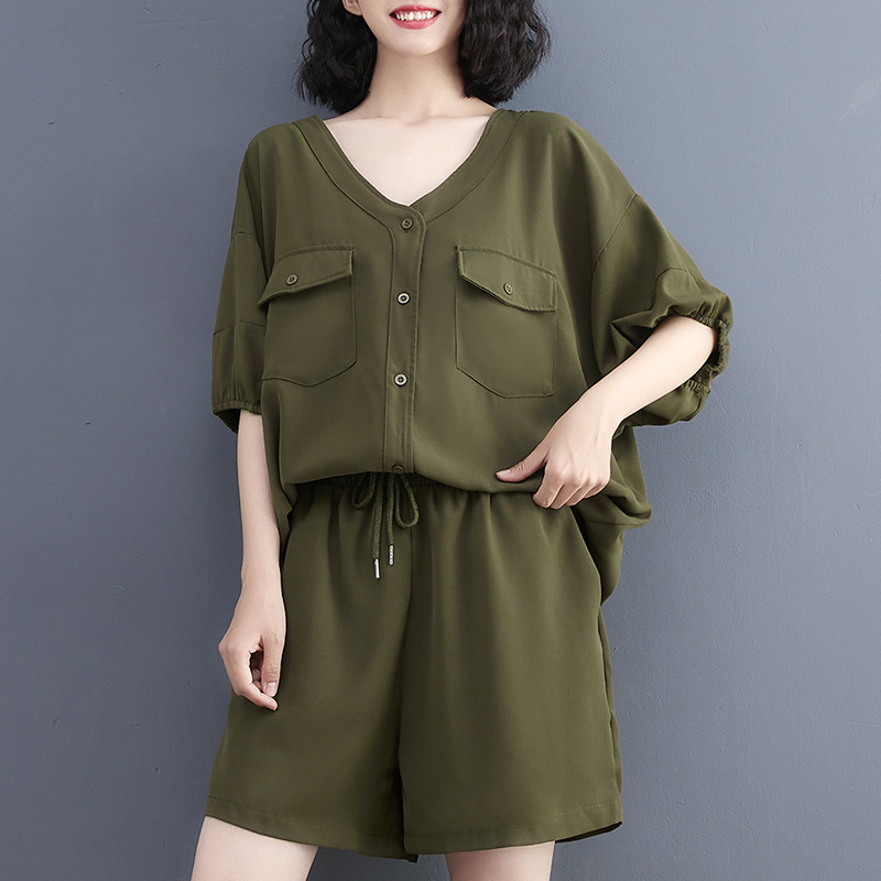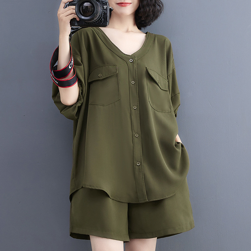 | nameOriginal | 2024 Summer V-Neck Cardigan Workwear Big Pocket Top Suit Shorts Two-Piece Set |