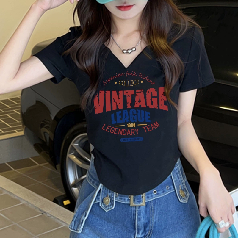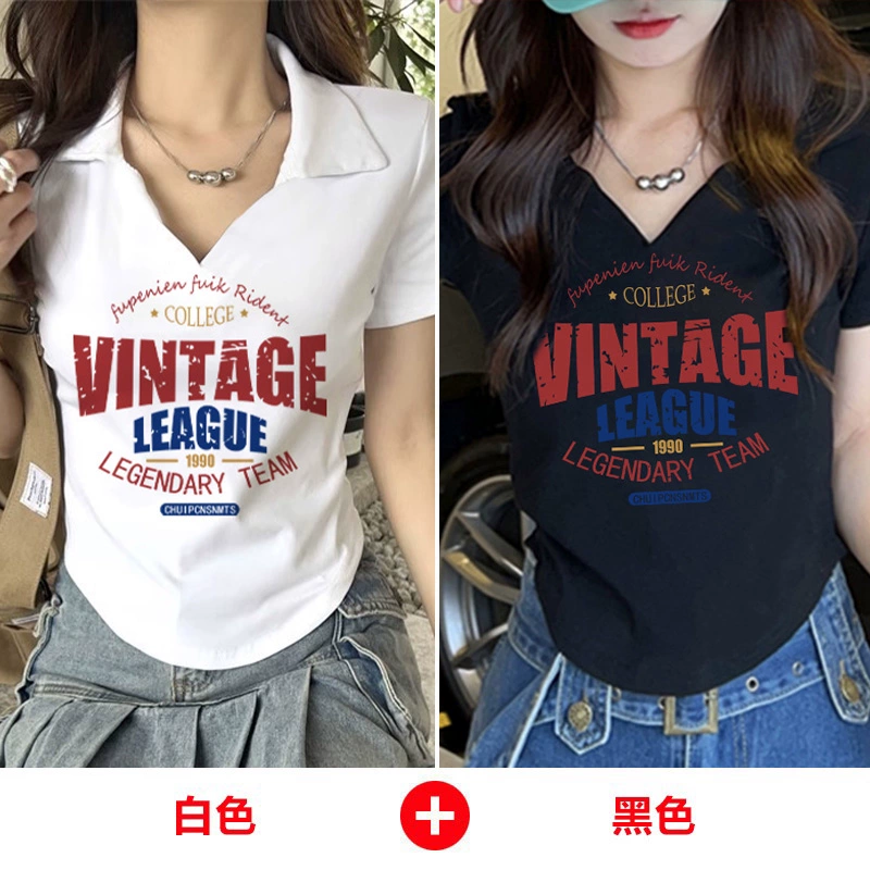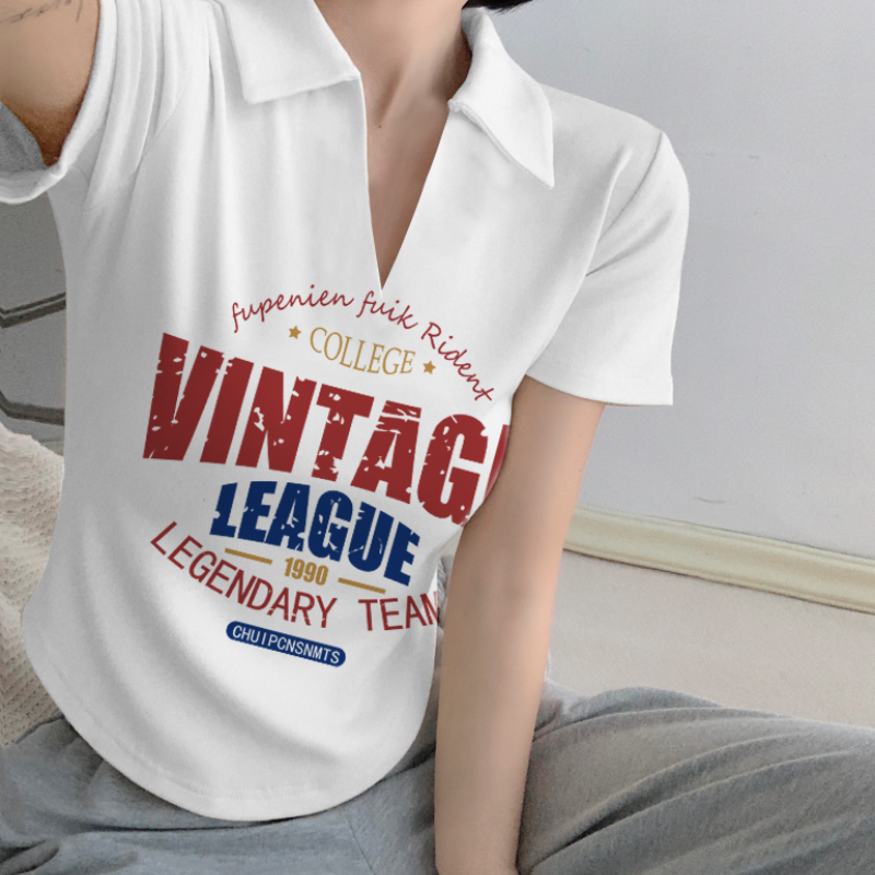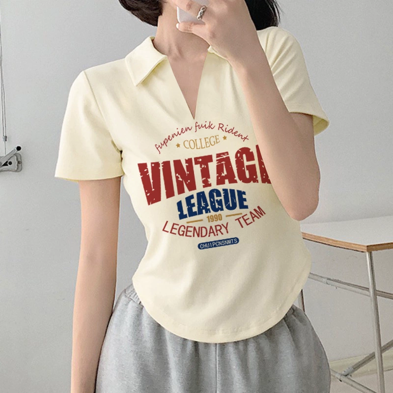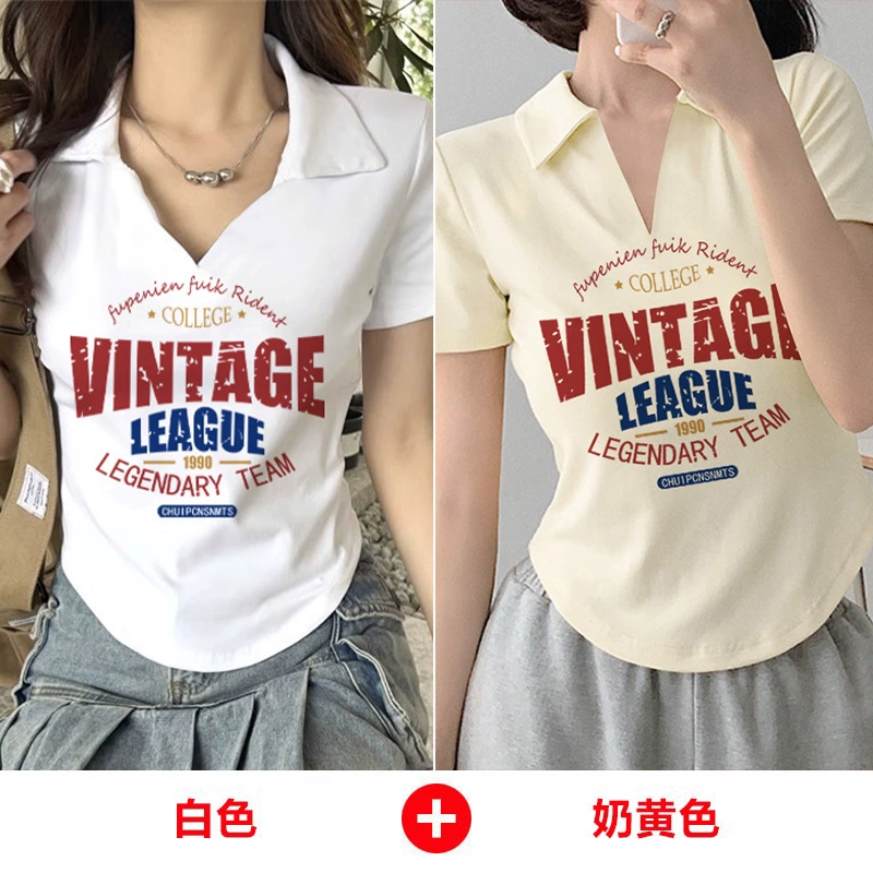 | nameOriginal | 2024 summer v-neck right shoulder short-sleeved t-shirt women's design niche waist slimming short polo shirt hot girl top |