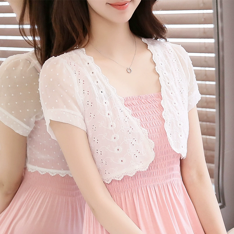 2024 summer versatile chiffon short shawl thin coat sun protection lace cardigan small waistcoat outer top for women