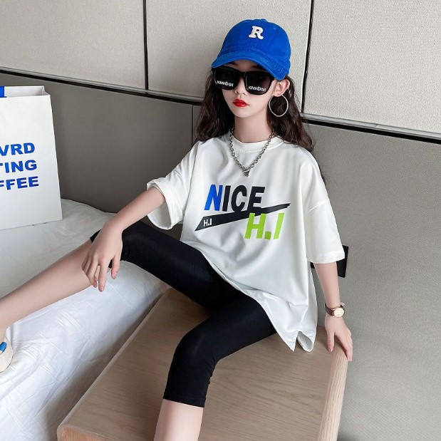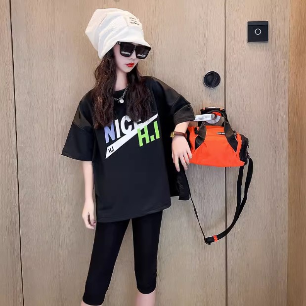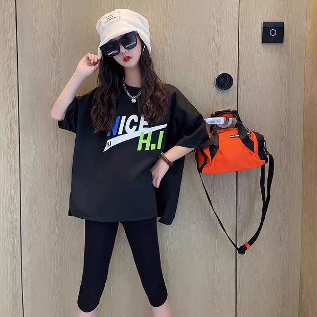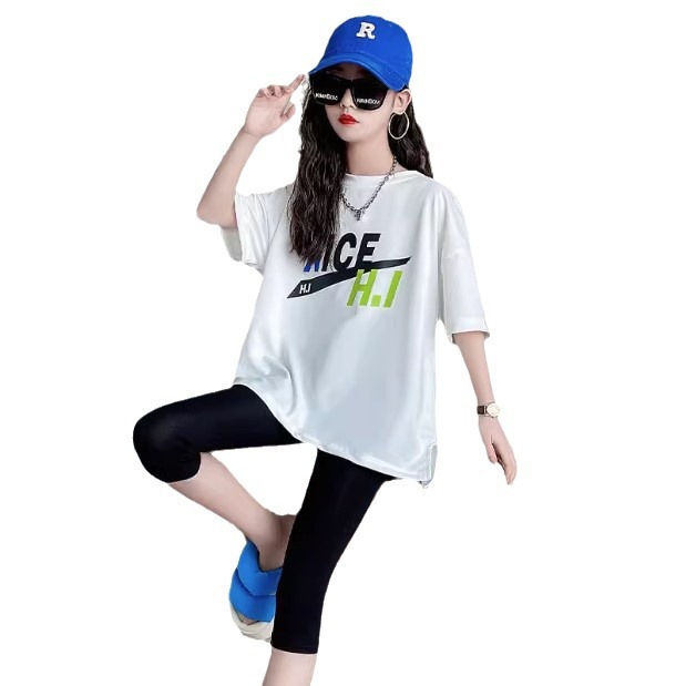2024 Summer Wear New Girl Sports suit Middle and Long Leggings for Middle and Big Children