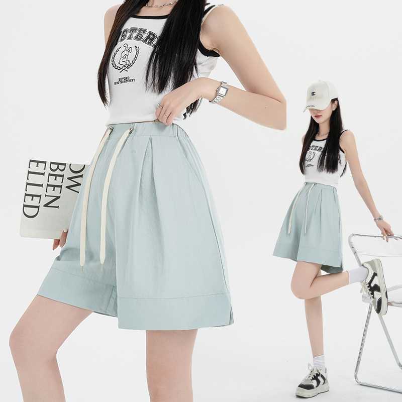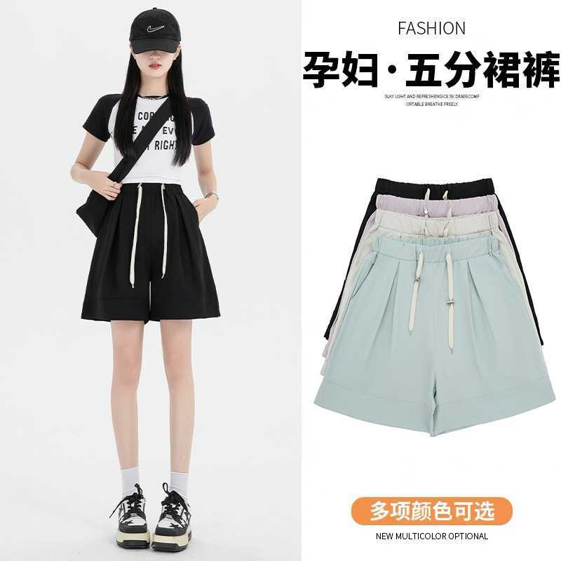 2024 Summer Wear Thin Outer Wear Pregnant Women's Short Pants New Pregnant Women's Wear Korean Style Drawstring Casual Five-point Wide-leg Shorts