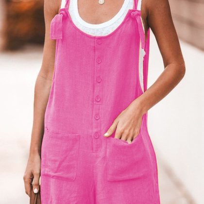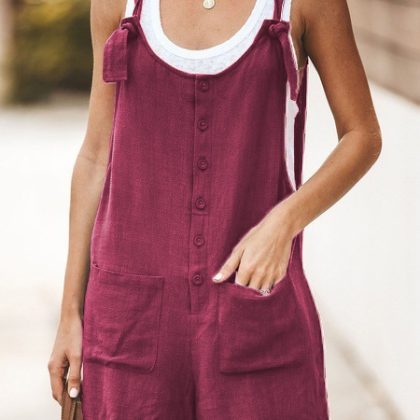 | nameOriginal | 2024 Summer wish Amazon ebay European and American women's solid color patch pocket lace-up cotton and linen suspender pants |