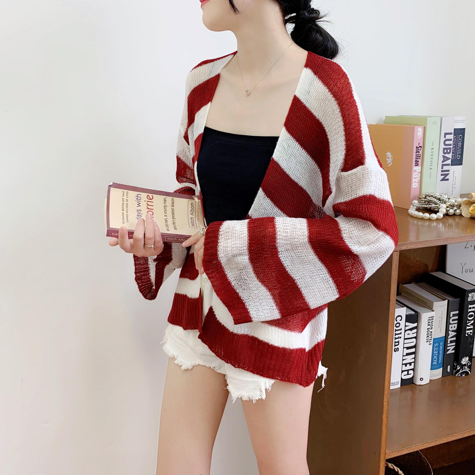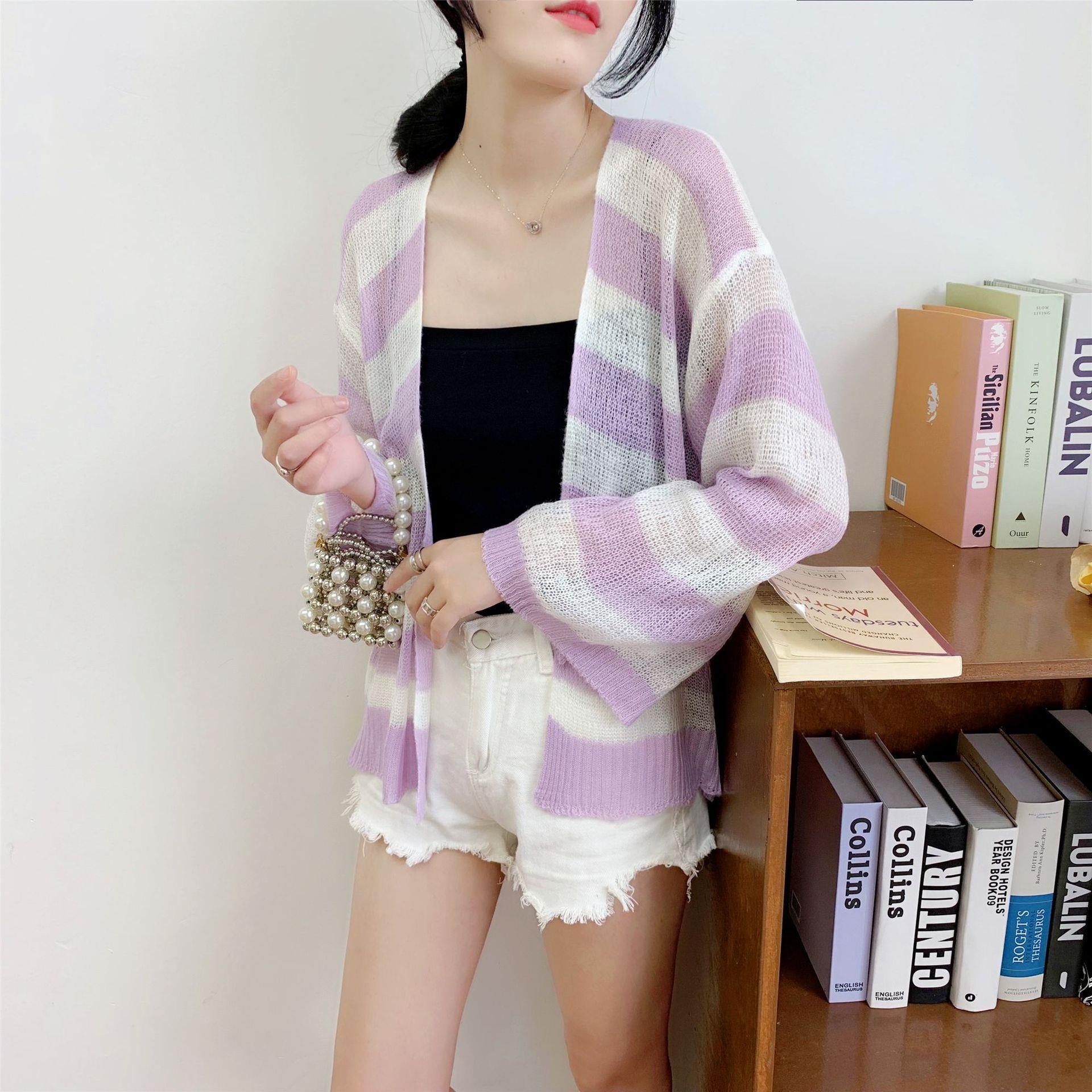 | nameOriginal | 2024 Sunscreen Cardigan Summer Thin Women's Air-conditioning Shirt Early Autumn Striped Loose Lazy Style Sweater Top Trendy |