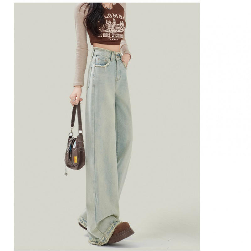 | nameOriginal | 2024 Sweet Cool light blue Rapped Wide Leg Jeans Women's Spring High Waist Loose Straight Long Pants |