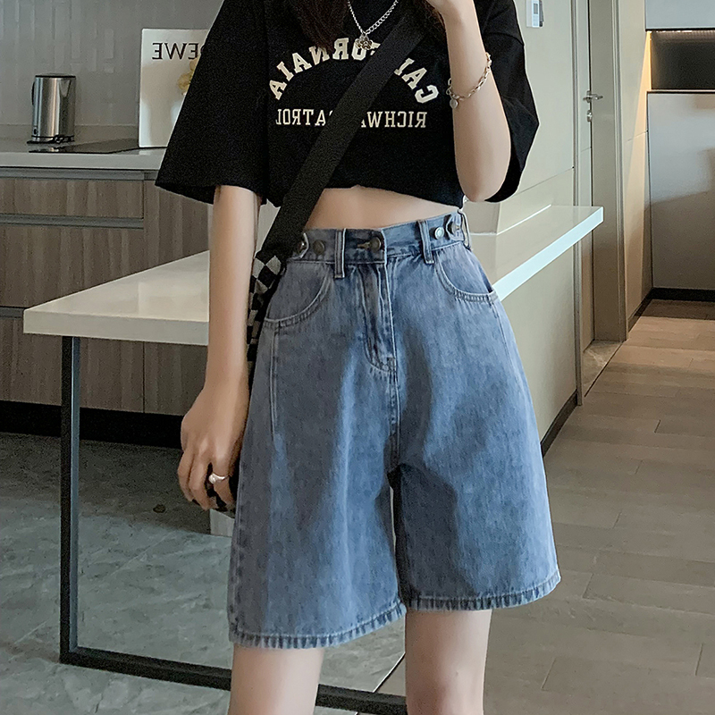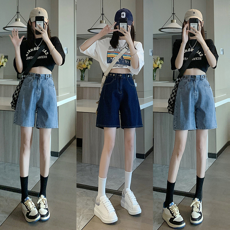 | nameOriginal | 2024 Sweet Cool Style Summer New High Waist Five-point Denim Shorts Women's Loose Slimming Design Sense Straight Trendy Middle Pants |