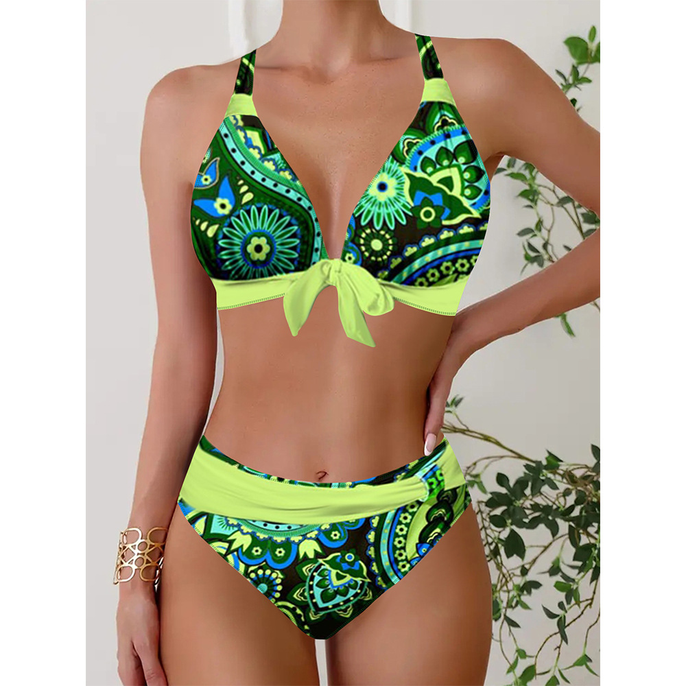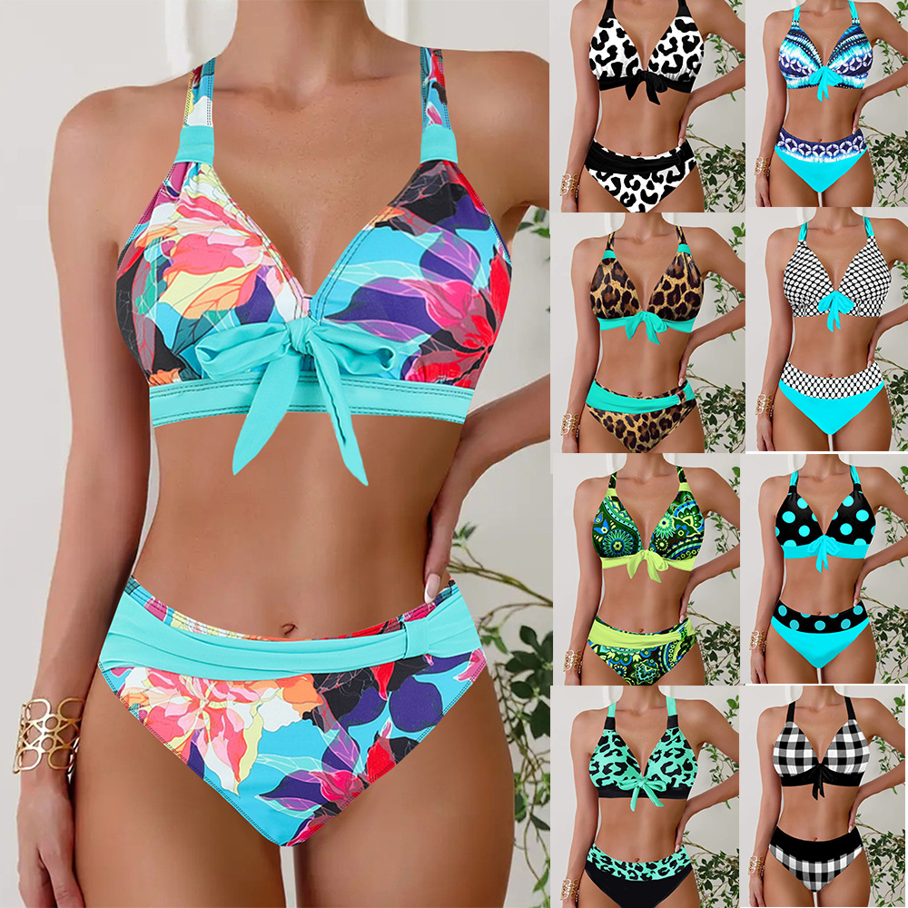 2024 Swimsuit New Color Printed Swimsuit Amazon European and American Triangle Bikini Split plus size Bikini