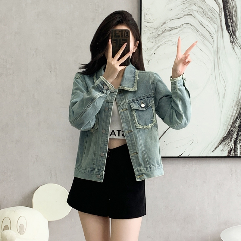 | nameOriginal | 2024 this year's popular light green washed denim jacket spring new spring and autumn all-match top |