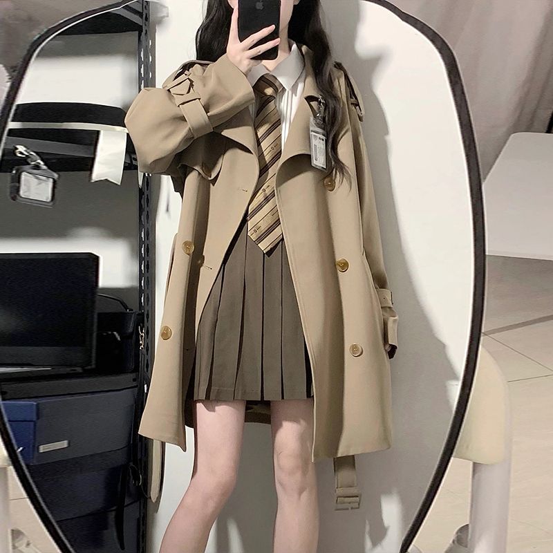 | nameOriginal | 2024 this year's popular long knee-length British windbreaker coat women's spring and autumn new small student coat |