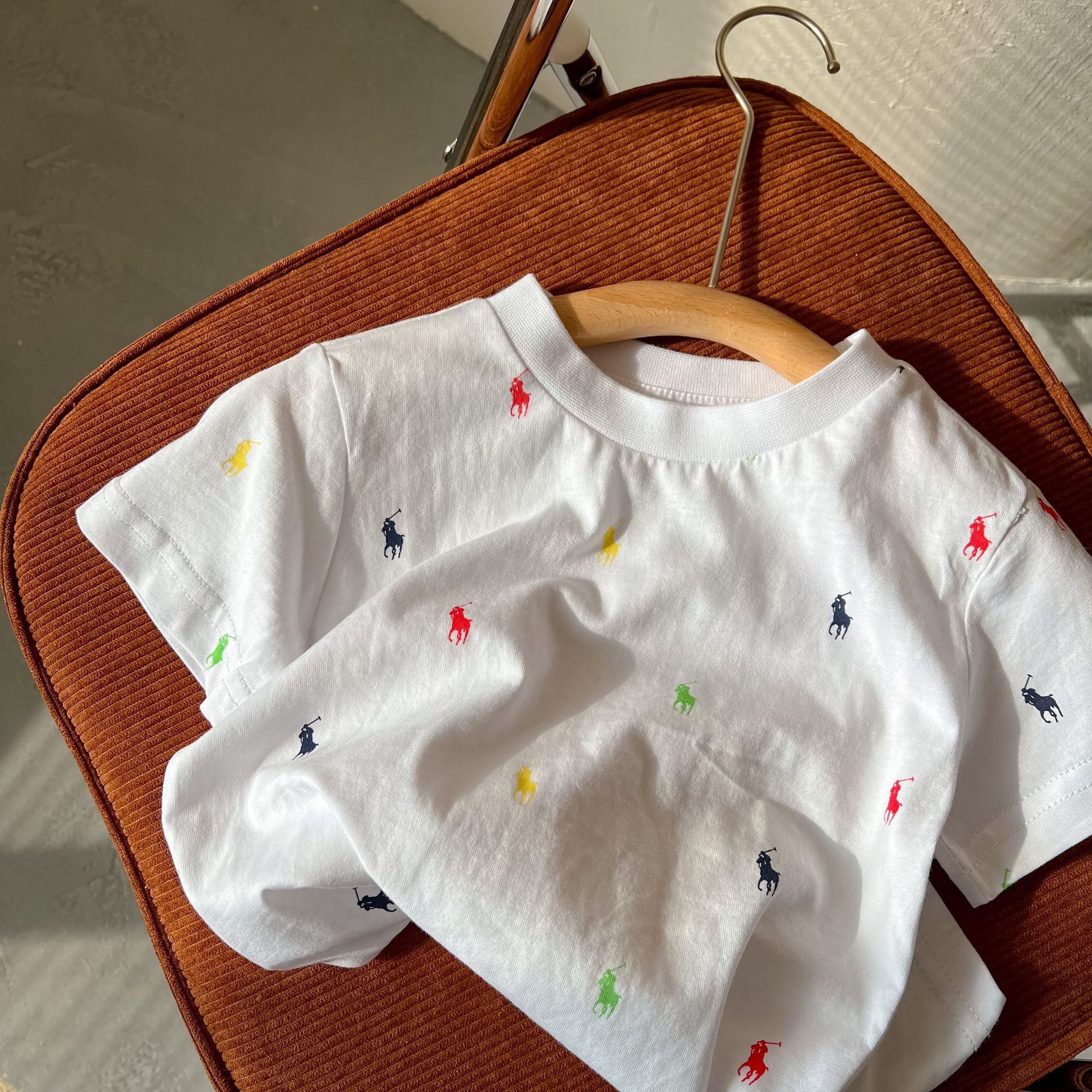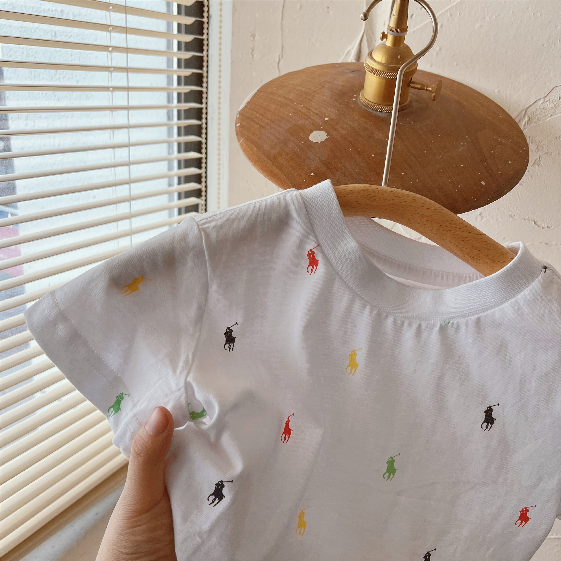 2024 Trendy Brand Boy’s Short-sleeved Baby’s Crewneck Casual Pullover Baby’s Western Style Neutral Handsome Children’s Thin T