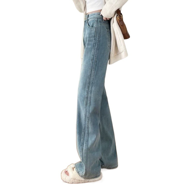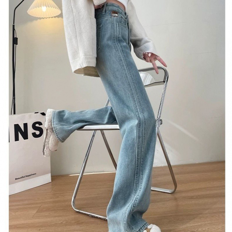 2024 Trendy light blue High Waist Narrow High Waist Wide Legs Slim Look Tall Meat Covering All-match Summer Thin Jeans