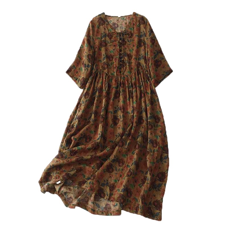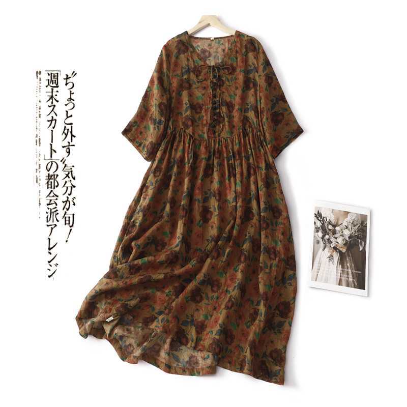 | nameOriginal | 2024 Vintage Printed dress Women's Loose plus size Slimming Western Style Mid-length Skirt |