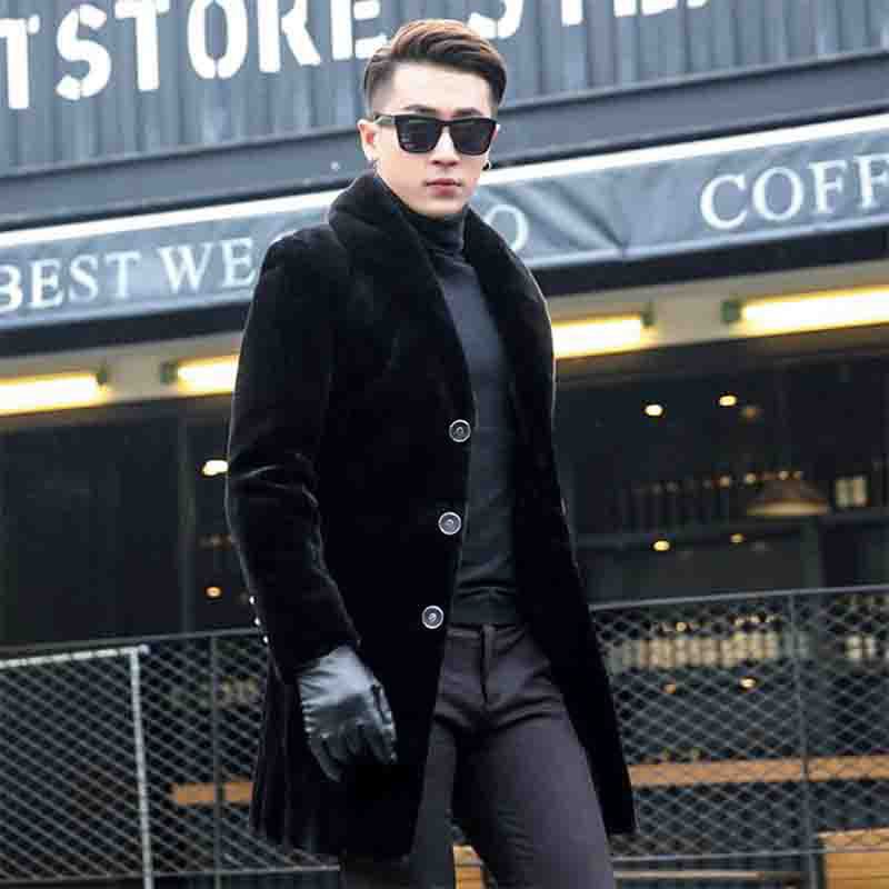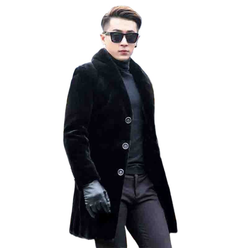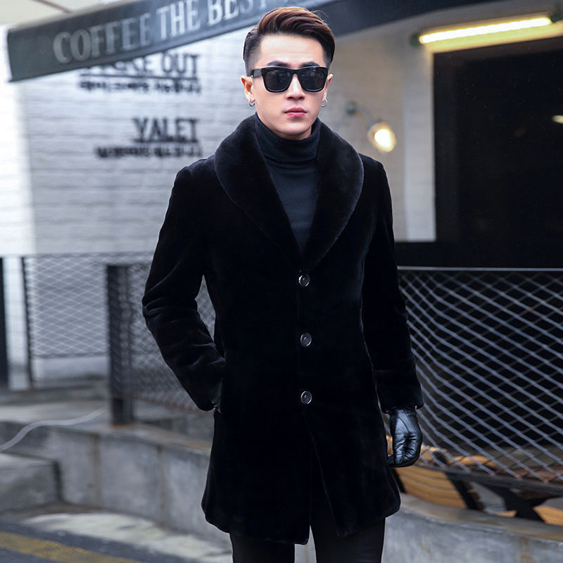 2024 Winter Imitation Mink Velvet Imitation Mink Coat Men’s Casual Mid-length Haining Imitation Mink Fur Imitation Fur Imitation Large