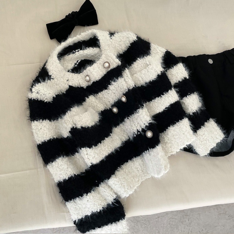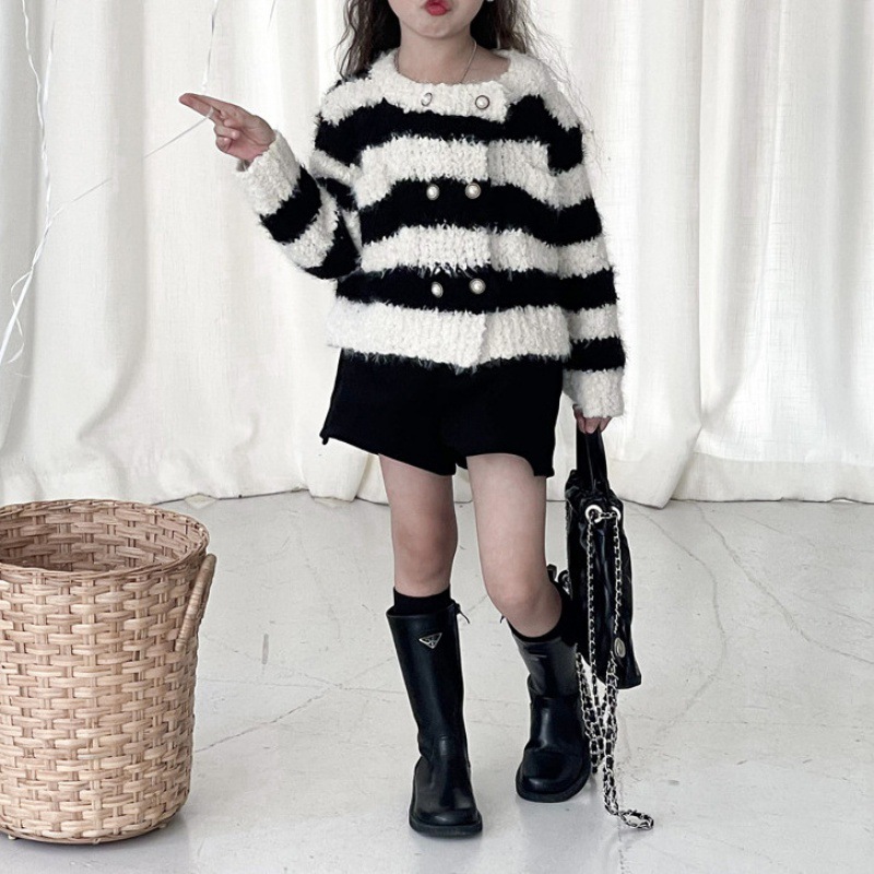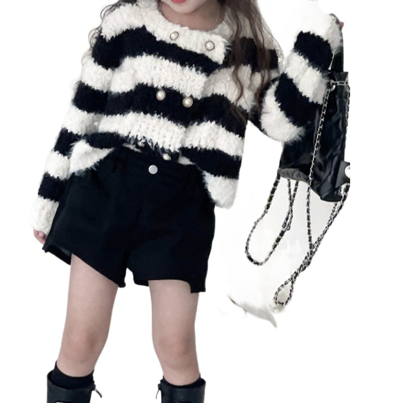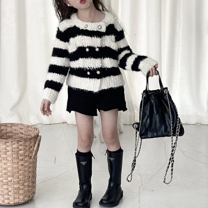 | nameOriginal | 2024 Winter New Children's Wear Girl's Chanel Style Sweater Coat Children's Pearl Buckle Striped Thickened Knitted Cardigan |