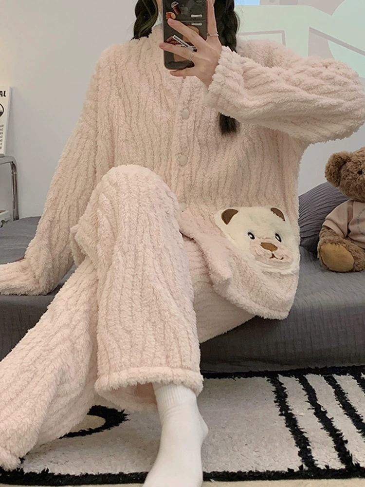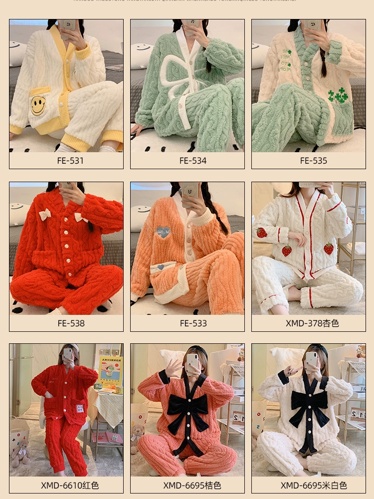 | nameOriginal | 2024 Winter New Coral Fleece Pajamas for Women Cute and Sweet Thickened Flannel and Velvet Home Clothing Set |