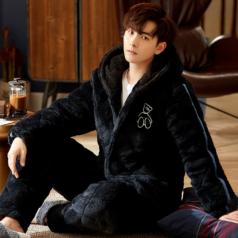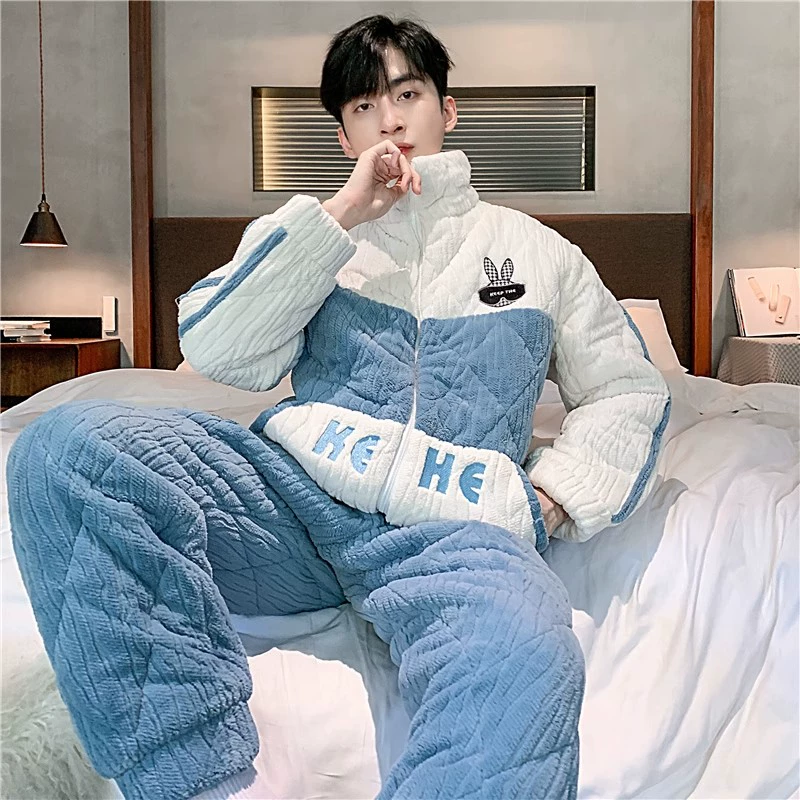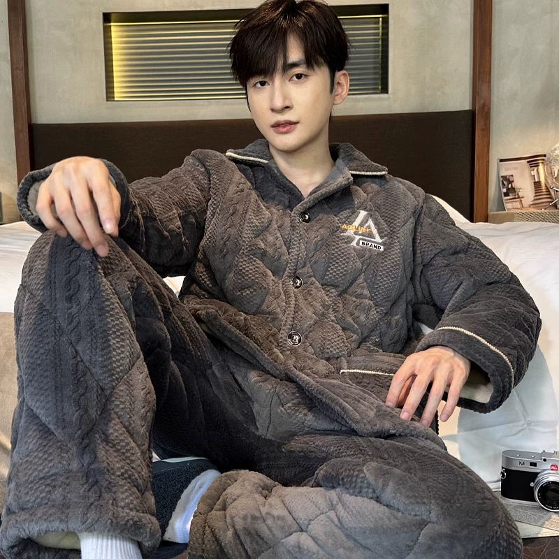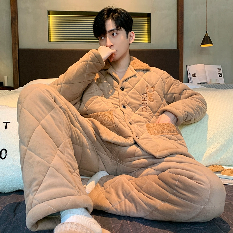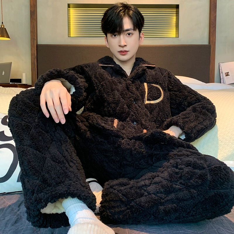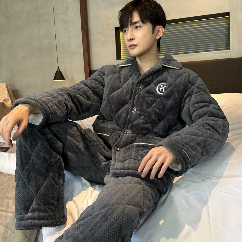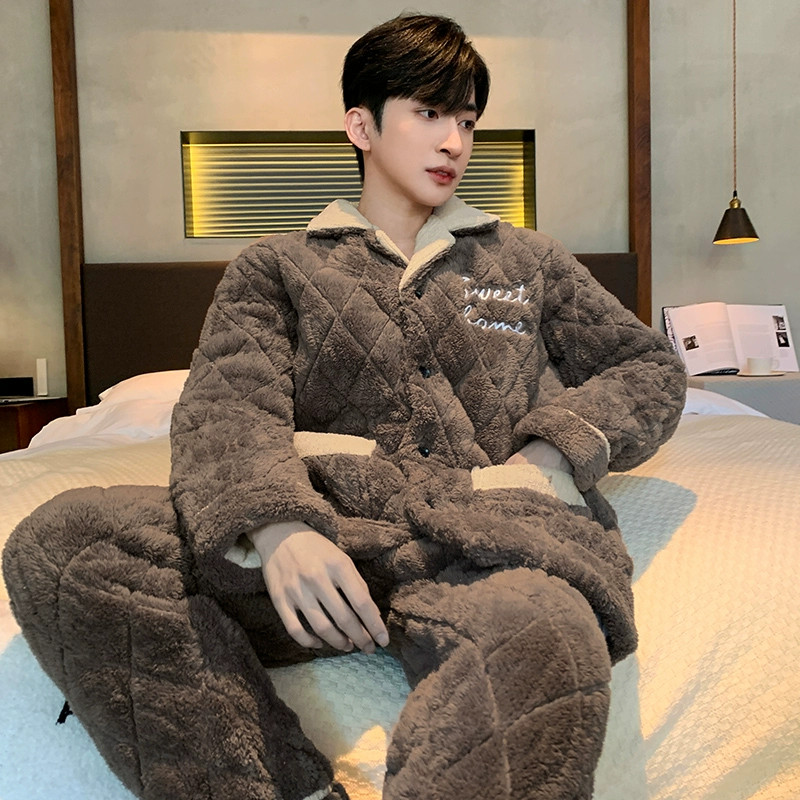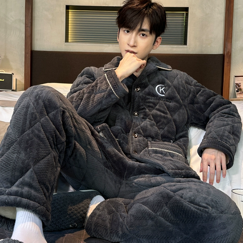 | nameOriginal | 2024 winter new coral velvet pajamas for men thickened and velvet three-layer quilted flannel home wear set |