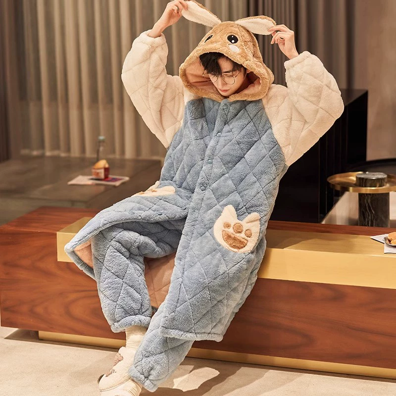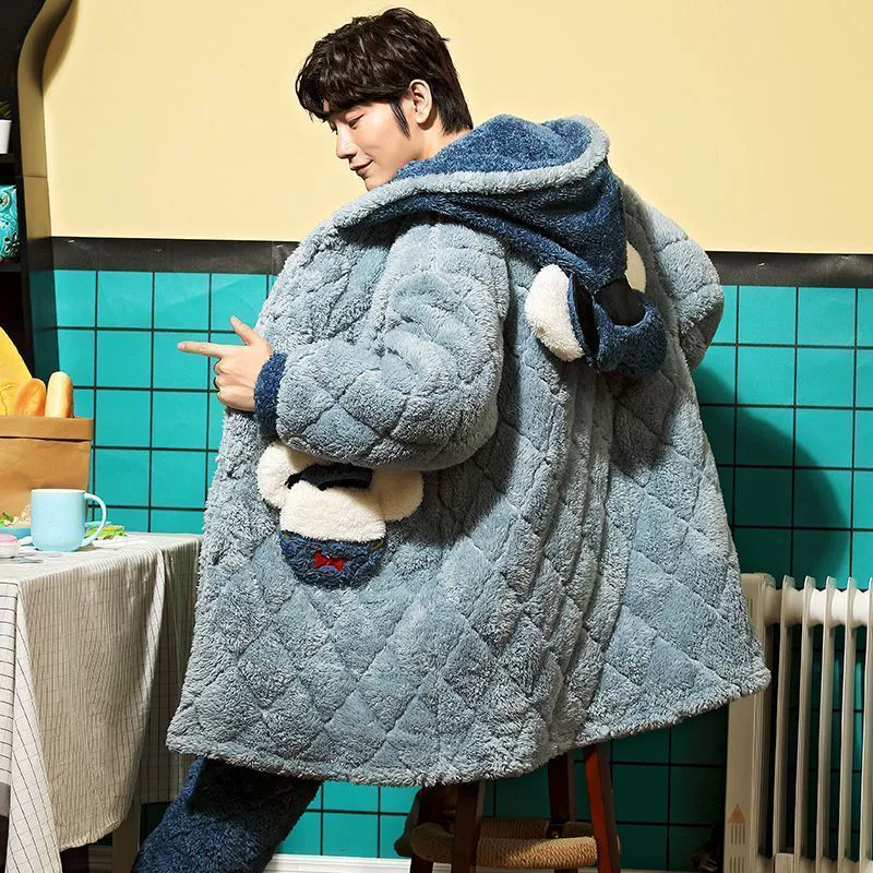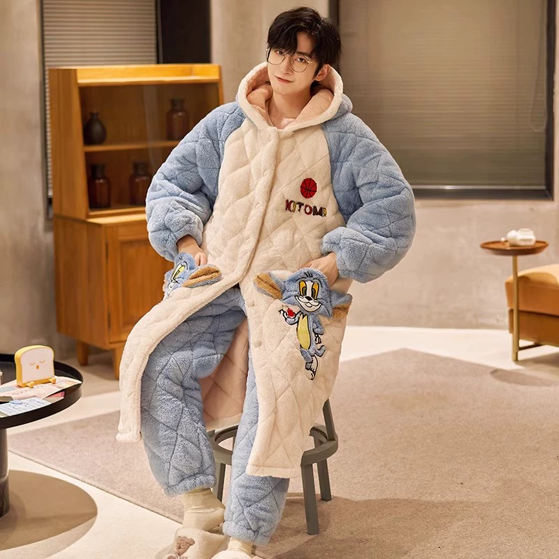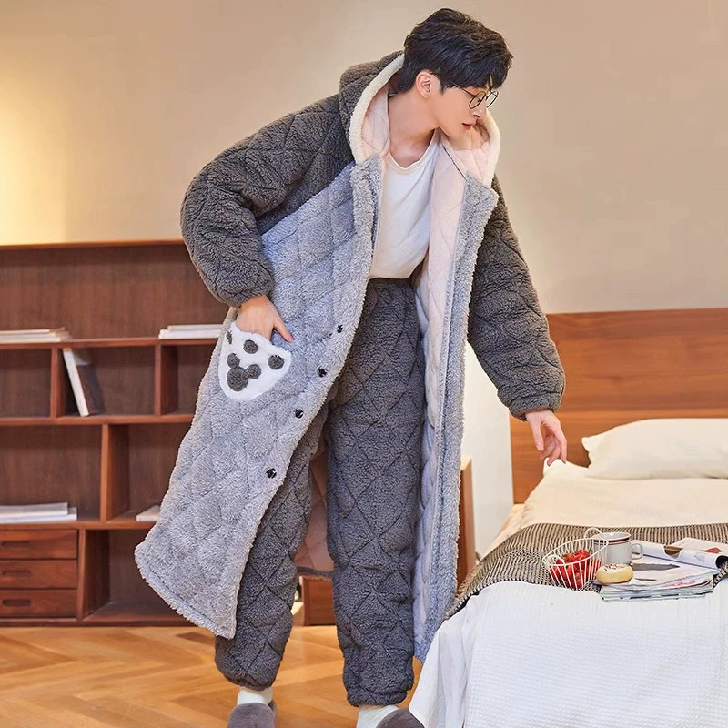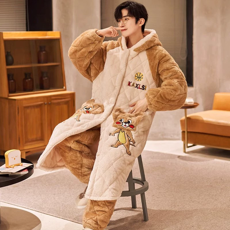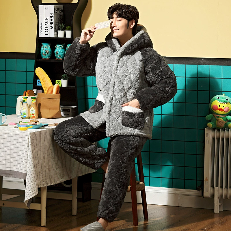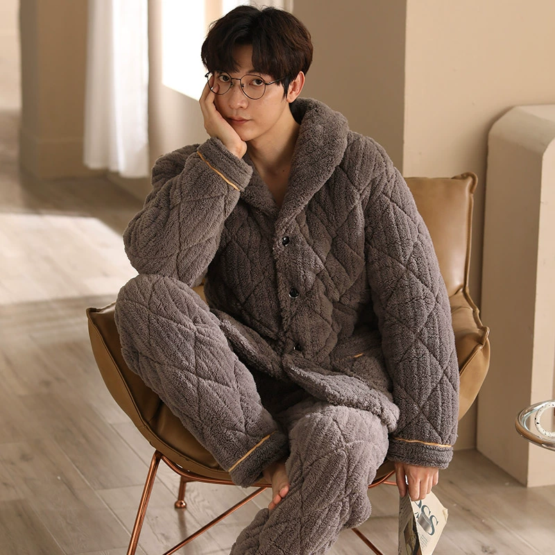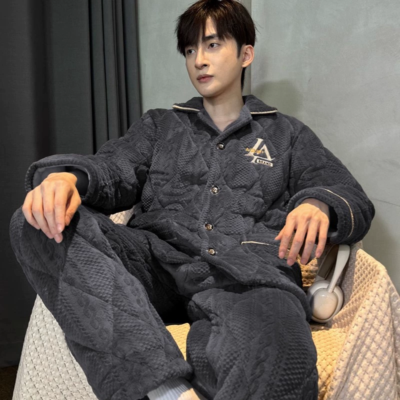 | nameOriginal | 2024 winter new coral velvet pajamas for men thickened and velvet three-layer quilted flannel home wear set |