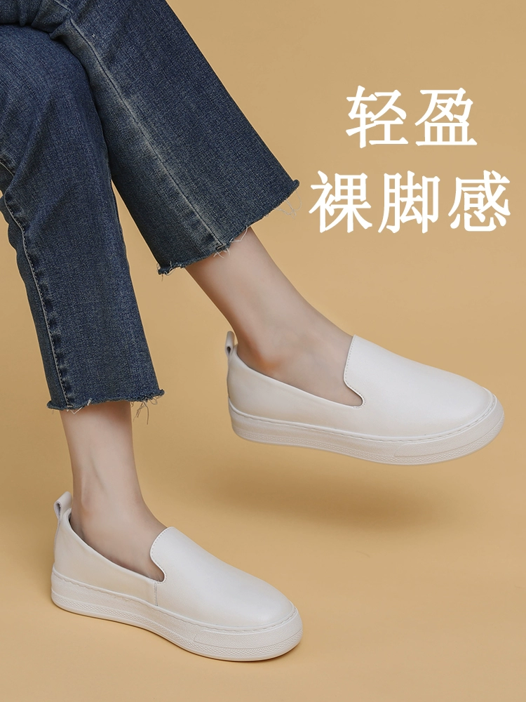 2024 New Winter Leather Lefu Shoes Female Heels Passing Lazy Shoes Sudi Soft sole Doudou Sipper Single Single Shoes