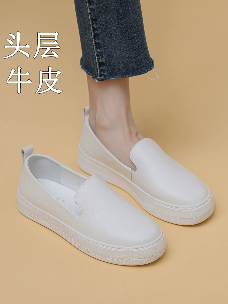 2024 Winter New Genuine Leather Loafers Women's Medium Heel Slip-on Lazy Shoes Thick Soled Soft Soled Bean Shoes Flat Shoes