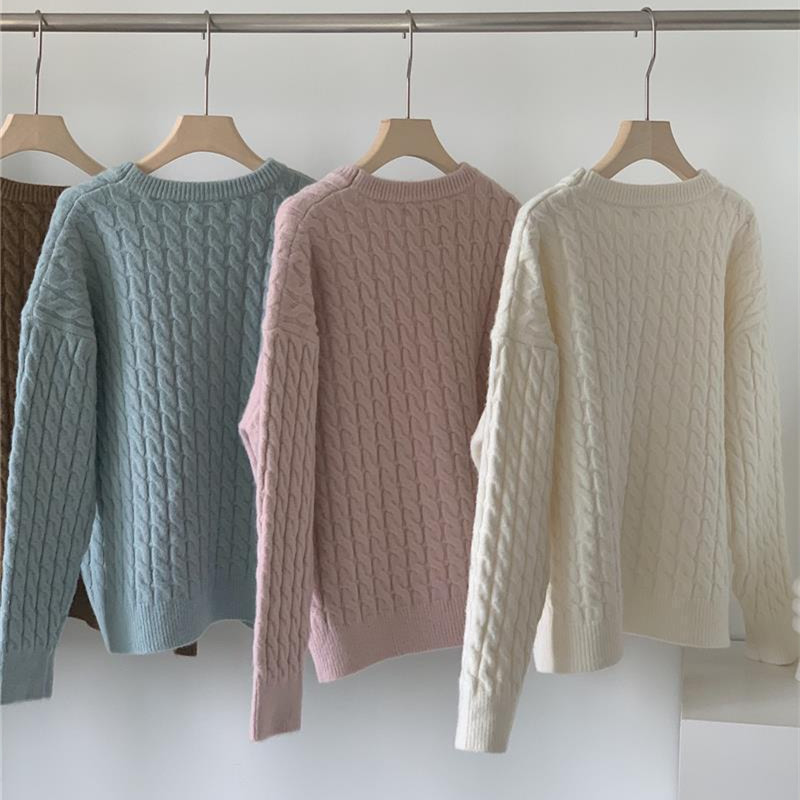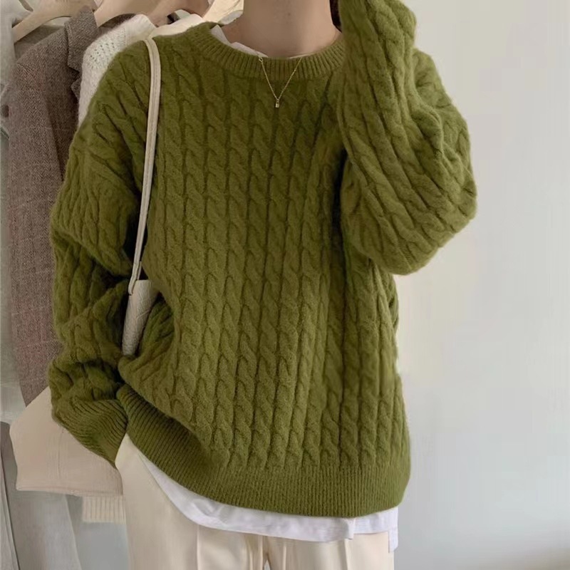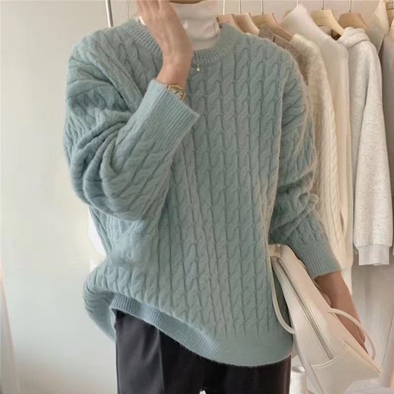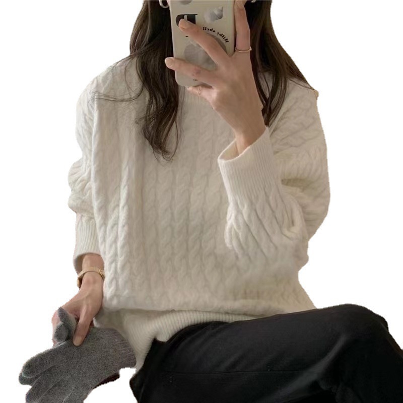 2024 Winter new Korean style gentle sweet twist pullover women’s round neck pullover soft glutinous sweater fashion