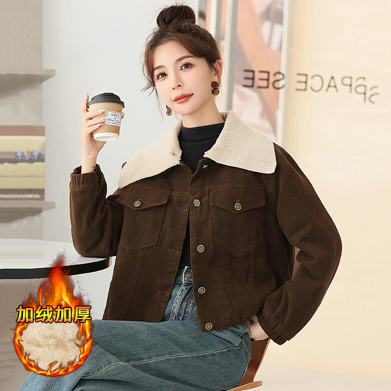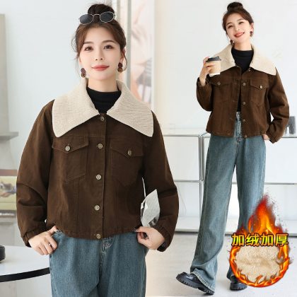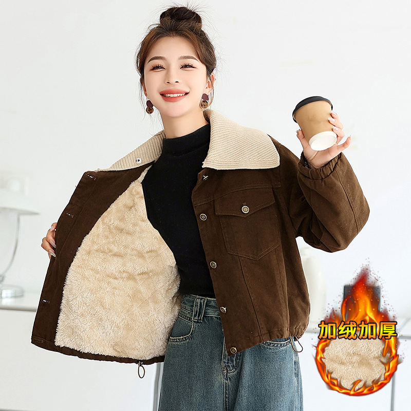 | nameOriginal | 2024 Winter new style small fleece-lined thickened large lapel Denim short coat Women's Popular cotton-padded coat parka clothes |