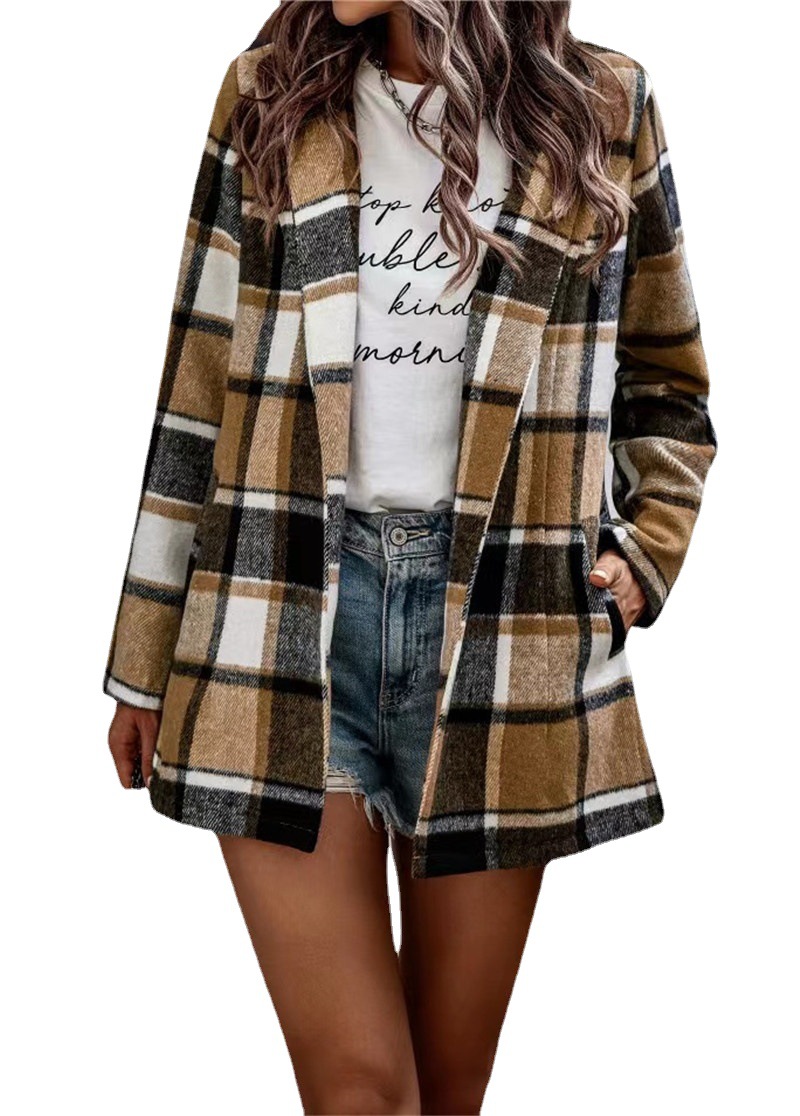 | nameOriginal | 2024 women's clothing new European and American cross-border TEMU loose plaid printed long sleeve pocket woolen coat cardigan top |