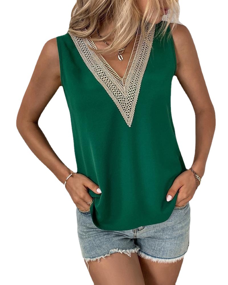 | nameOriginal | 2024 women's new Amazon European and American cross-border TEMU summer casual shirt loose V-neck lace sleeveless vest |