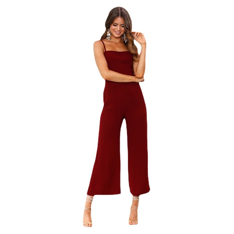 2024 women's new European and American cross-border Amazon AliExpress summer sexy temperament sleeveless solid color jumpsuit women