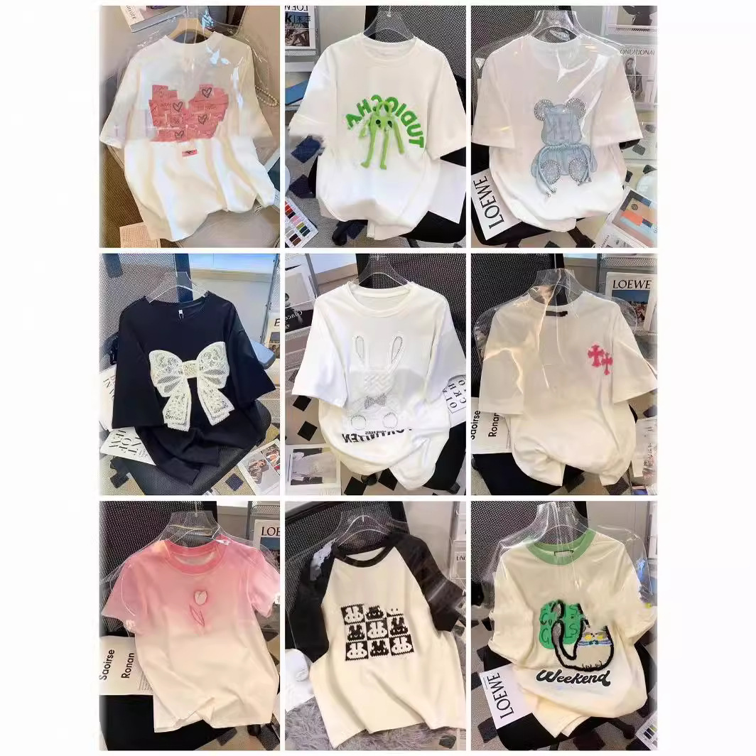 | nameOriginal | 2024 women's stalls supply summer new Korean version of short sleeve T-shirt women's white printed loose T-shirt 1688 wholesale |