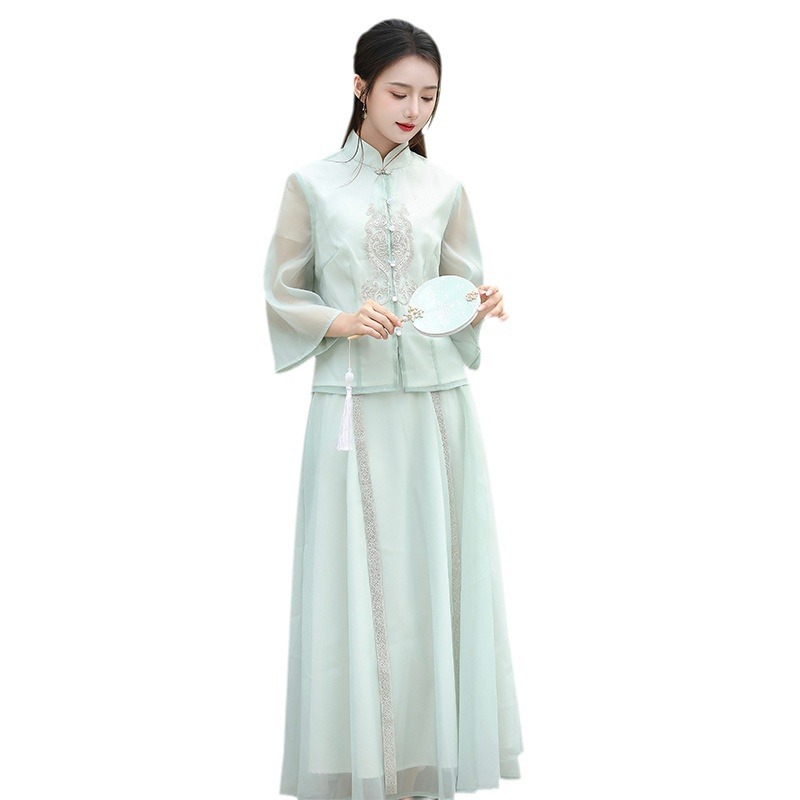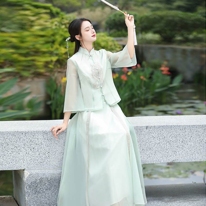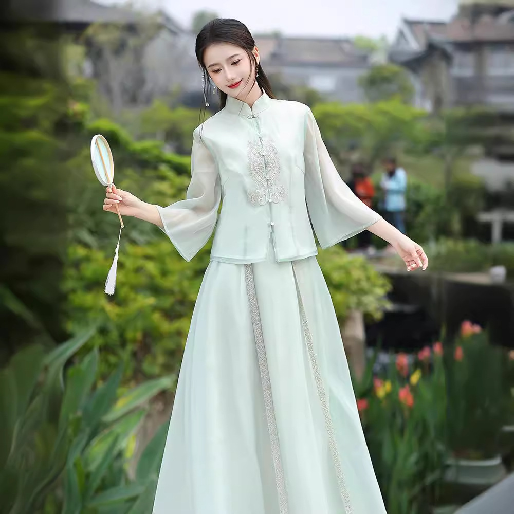 | nameOriginal | 2024 Xia Xin Chinese Style Vertical Collar Guofeng Heavy Industry Embroidered Modified Tang Suit Top Skirt Retro Tea Suit Women's Suit |