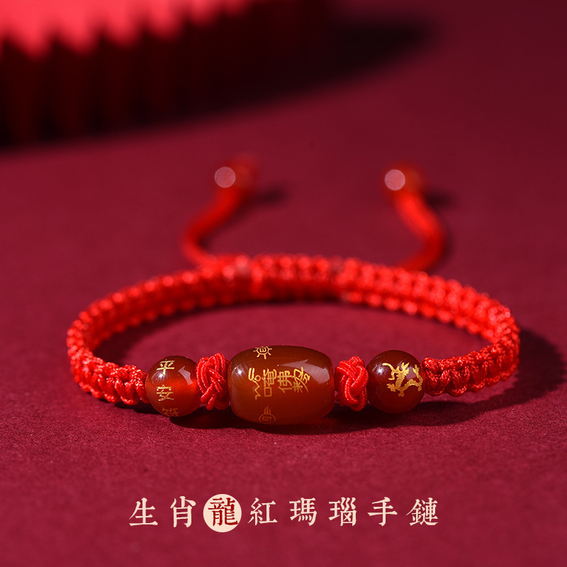 2024 Year of the Dragon Bracelet Female Red Agate Red Rope Woven Zodiac Guardian Bracelet Birth Year Red Rope Bracelet