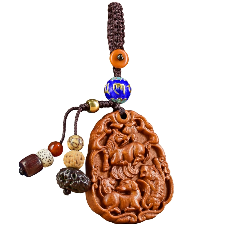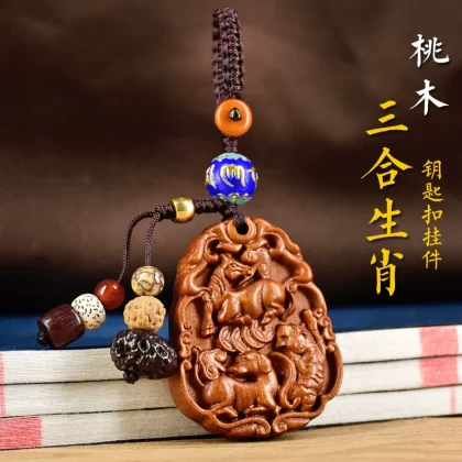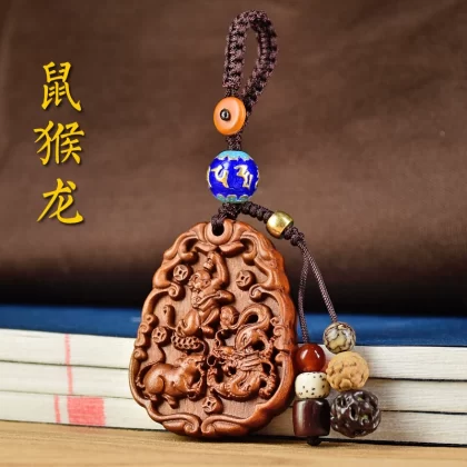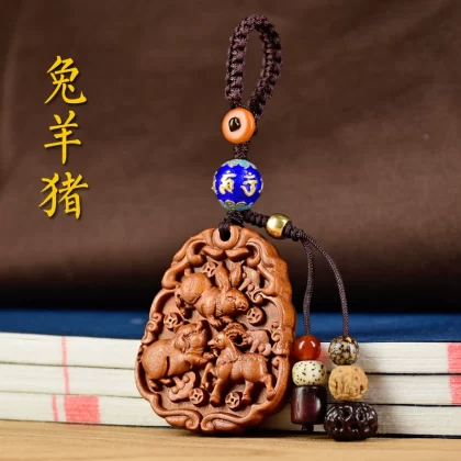 | nameOriginal | 2024 Year of the Rabbit Mascot Twelve Zodiac Signs Three In One and Six In One Lucky Peach Wood Carved Pendant Keychain Pendant for Men and Women |