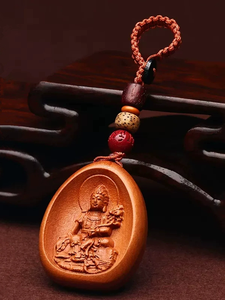 2024 Year of the Rabbit Zodiac Zodiac Snake Guardian God Puxian Bodhisattva Native Buddha Peachwood Keychain Pendant Small Pendant for Men and Women