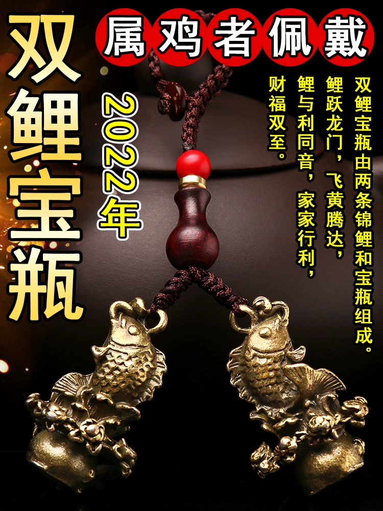 | nameOriginal | 2024 zodiac mascots belong to the rooster, double carp, aquarium pendant, koi carp, brass car key chain pendant |