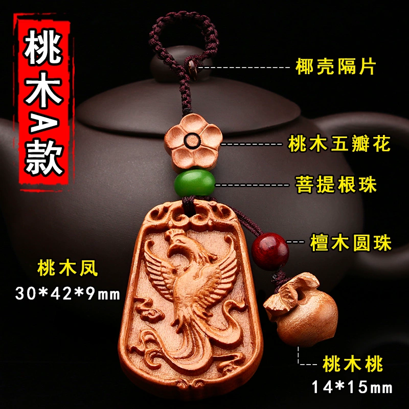 | nameOriginal | 2024 zodiac monkey mascot peach wood pendant Danfeng bestows peach men and women brass car key chain pendant |