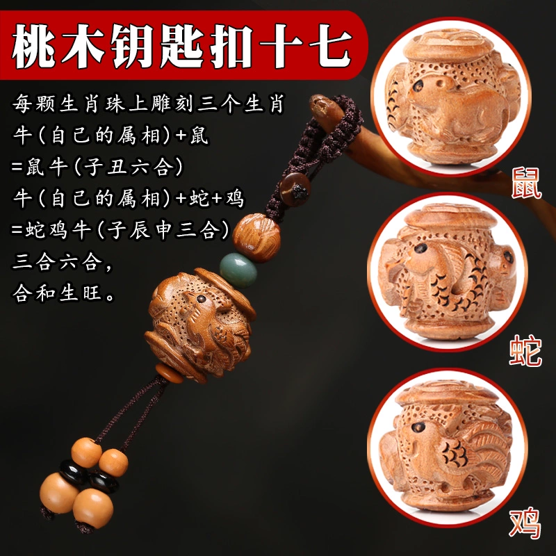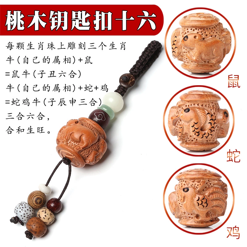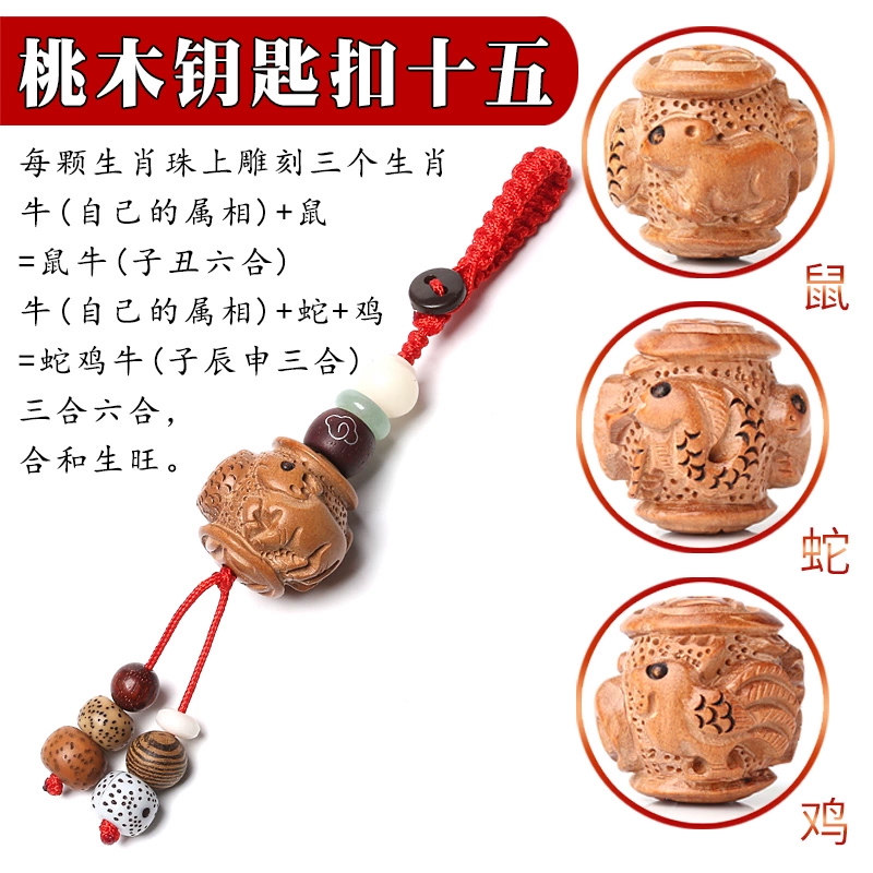 | nameOriginal | 2024 zodiac ox birth year son Chou Liuhe Siyou Chou Sanhe peach wood pendant keychain mascot pendant |