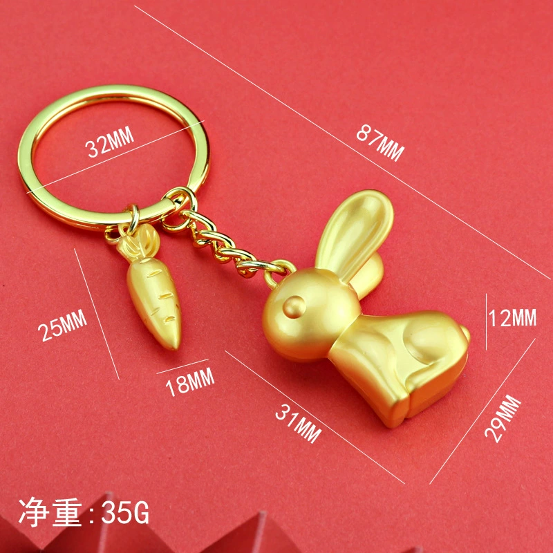 2024 zodiac radish little golden rabbit mascot rich three -dimensional bunny metal key buckle small gift pendant